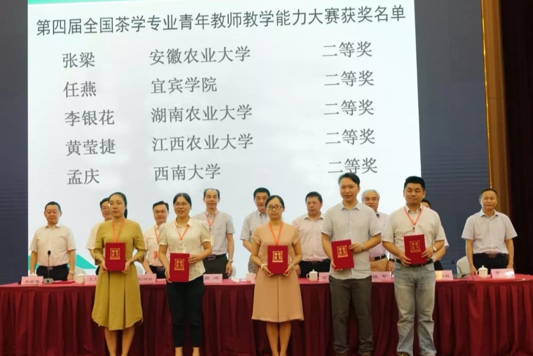 重庆市委农业农村工委委员袁德胜在致辞中强调,茶叶发展高度契合国家乡村振兴发展战略,并肯定了其在重庆市优势产业发展上的重要作用。参会嘉宾为第四届全国高校茶学专业青年教师教学能力大赛获奖人员颁奖,学校食品科学学院孟庆老师荣获二等奖。