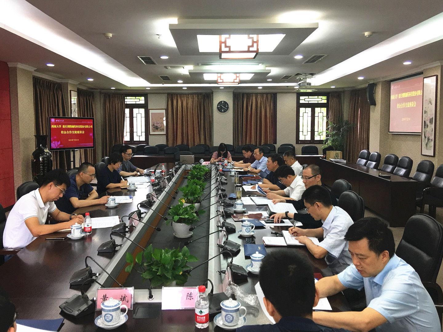 7月21日上午,重庆博腾制药科技股份有限公司执行董事长居年丰一行来校商讨校企合作。学校党委书记李旭锋、校长张卫国出席座谈会。