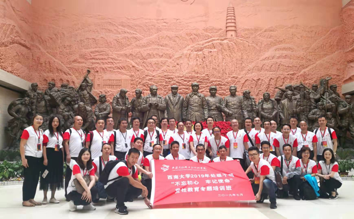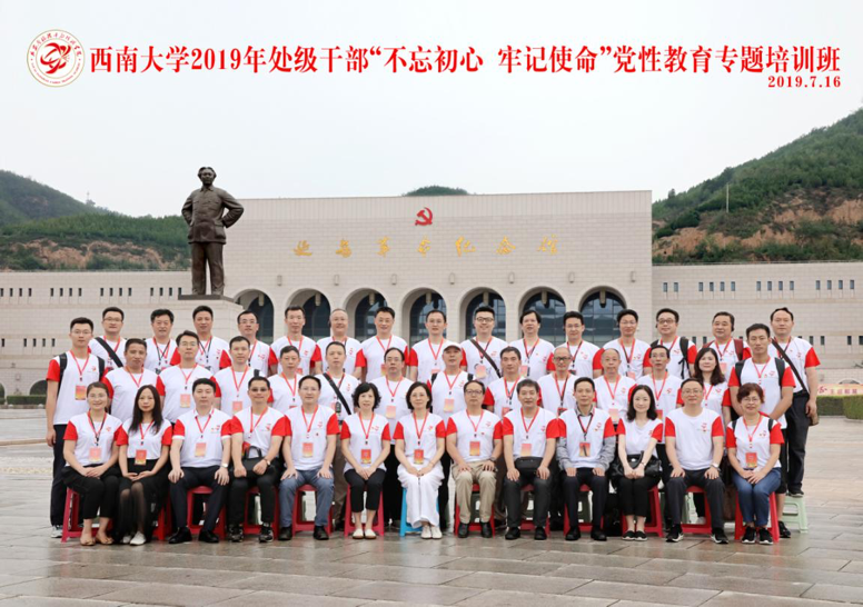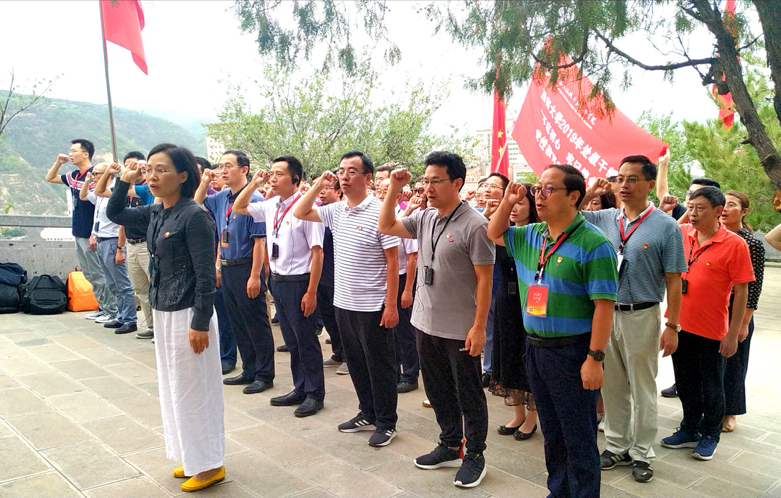 在全党上下开展“不忘初心 牢记使命”主题教育,学校第三次党代会胜利闭幕之际,7月15日至21日,学校2019年处级干部“不忘初心 牢记使命”党性教育专题培训班在革命圣地延安顺利举行、圆满结业。培训班由学校组织部部长杨爱华担任临时党支部书记,校长助理周光明担任班长,共有党群部门主要负责人、二级党组织书记等42名同志参加。