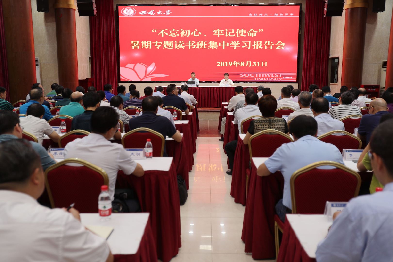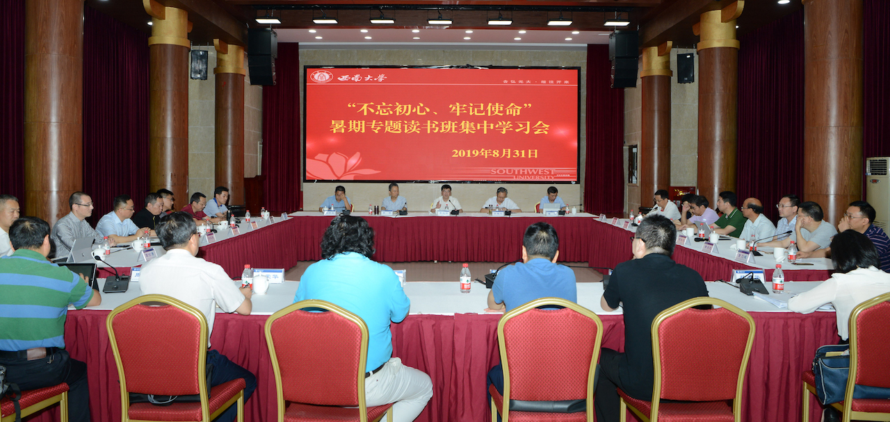 为学习贯彻习近平总书记在“不忘初心、牢记使命”主题教育工作会议上的重要讲话精神和《中共中央关于在全党开展“不忘初心、牢记使命”主题教育的意见》文件精神,按照教育部党组有关要求,8月31日,学校举办了校领导和党委理论学习中心组成员“不忘初心、牢记使命”暑期专题读书班集中学习会。集中学习会分为两个阶段,上午为专题报告,下午为专题研讨。