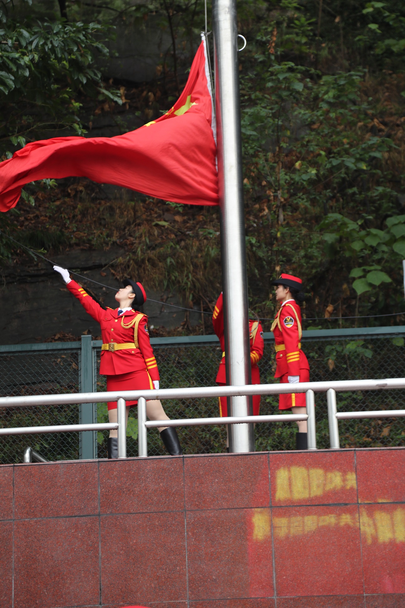 在庄严雄壮的中华人民共和国国歌声中,beat365在线唯一官网登录学生女子国旗班队员将五星红旗冉冉升起。