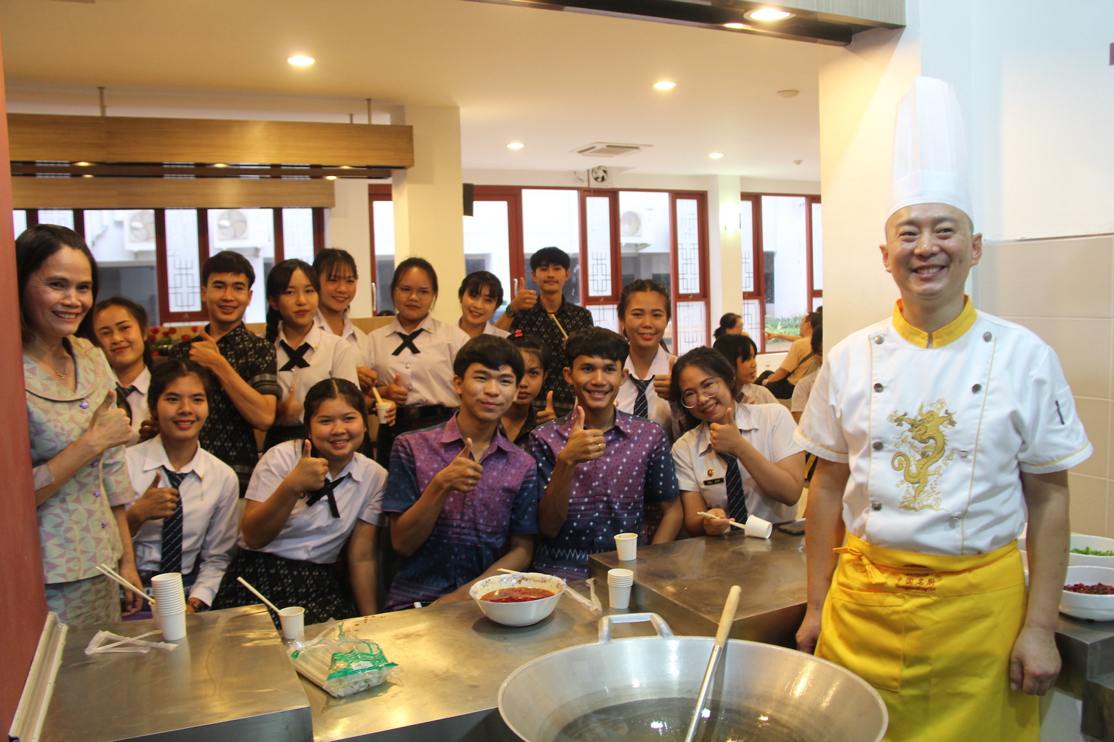 8月30日,“中国厨房”美食文化节暨beat365在线唯一官网登录泰北校友会揭牌仪式在泰国孔敬大学隆重开幕,桂园宾馆厨师团队受邀在美食文化节上一展厨艺,乐山钵钵鸡、糖醋排骨香气四溢,循香而来的嘉宾和师生在摊位前排起了长龙,品尝之后都赞不绝口。