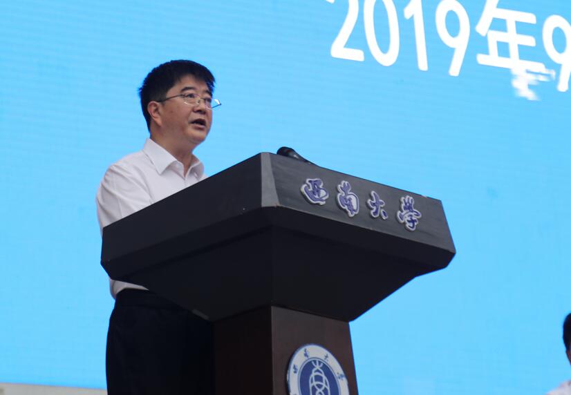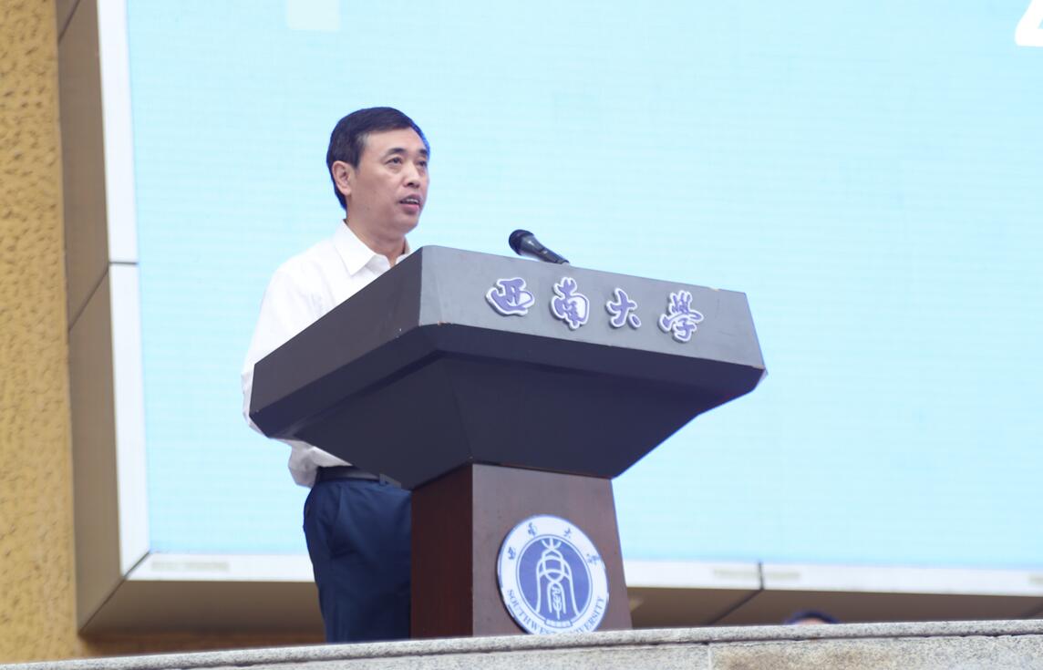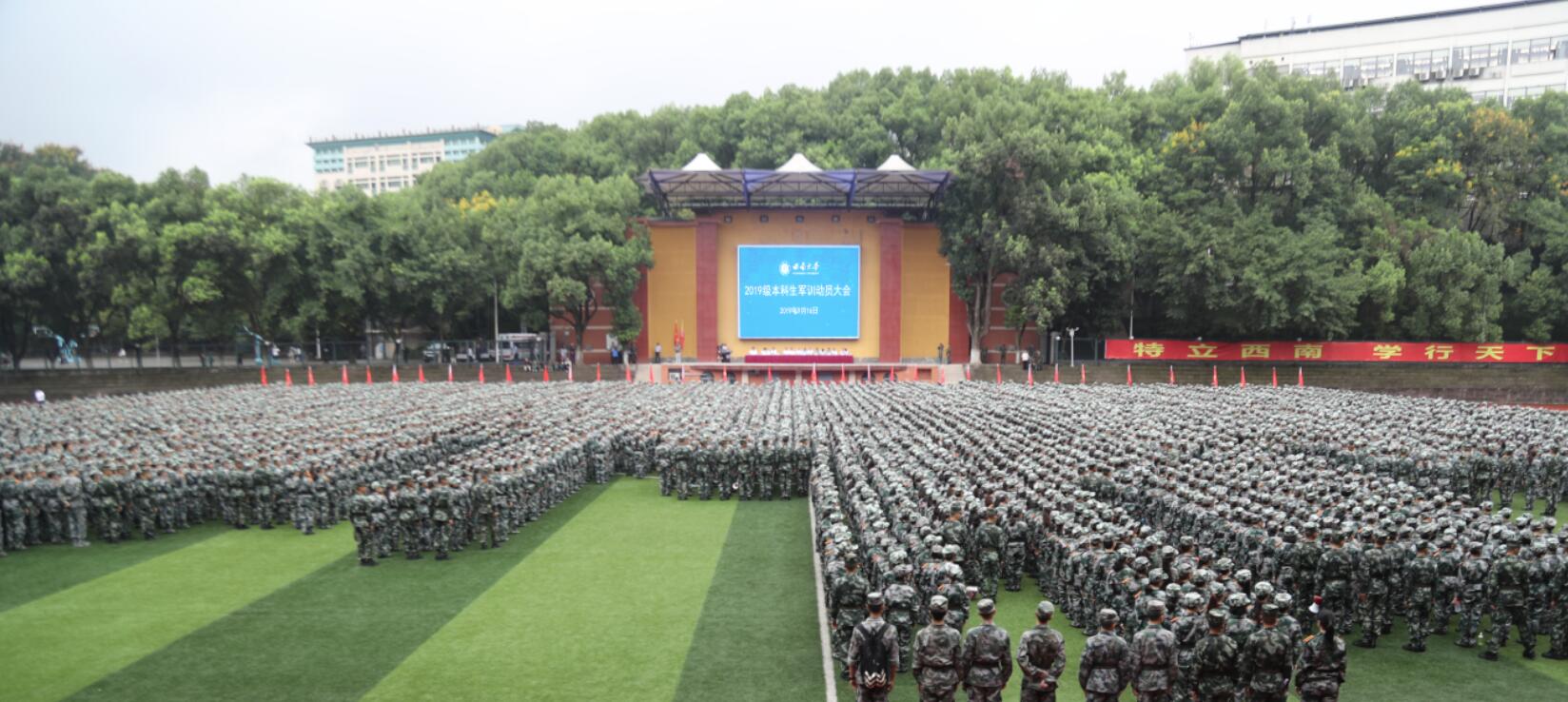 9月16日,学校2019级本科新生军训动员大会在第一运动场举行。北碚区委常委、武装部部长赵玉军大校,武警重庆市总队机动支队支队长、军训领导小组副组长王成上校,武警重庆市总队机动支队副支队长、军训师副师长张开建上校,校党委书记、军训领导小组组长、军训师政委李旭锋,校长、军训领导小组组长、军训师师长张卫国,党委副书记、军训领导小组副组长、军训师副政委潘洵,副校长靳玉乐,党委常委、党委宣传部部长李荣华及军训领导小组全体成员出席大会。大会由靳玉乐副校长主持。