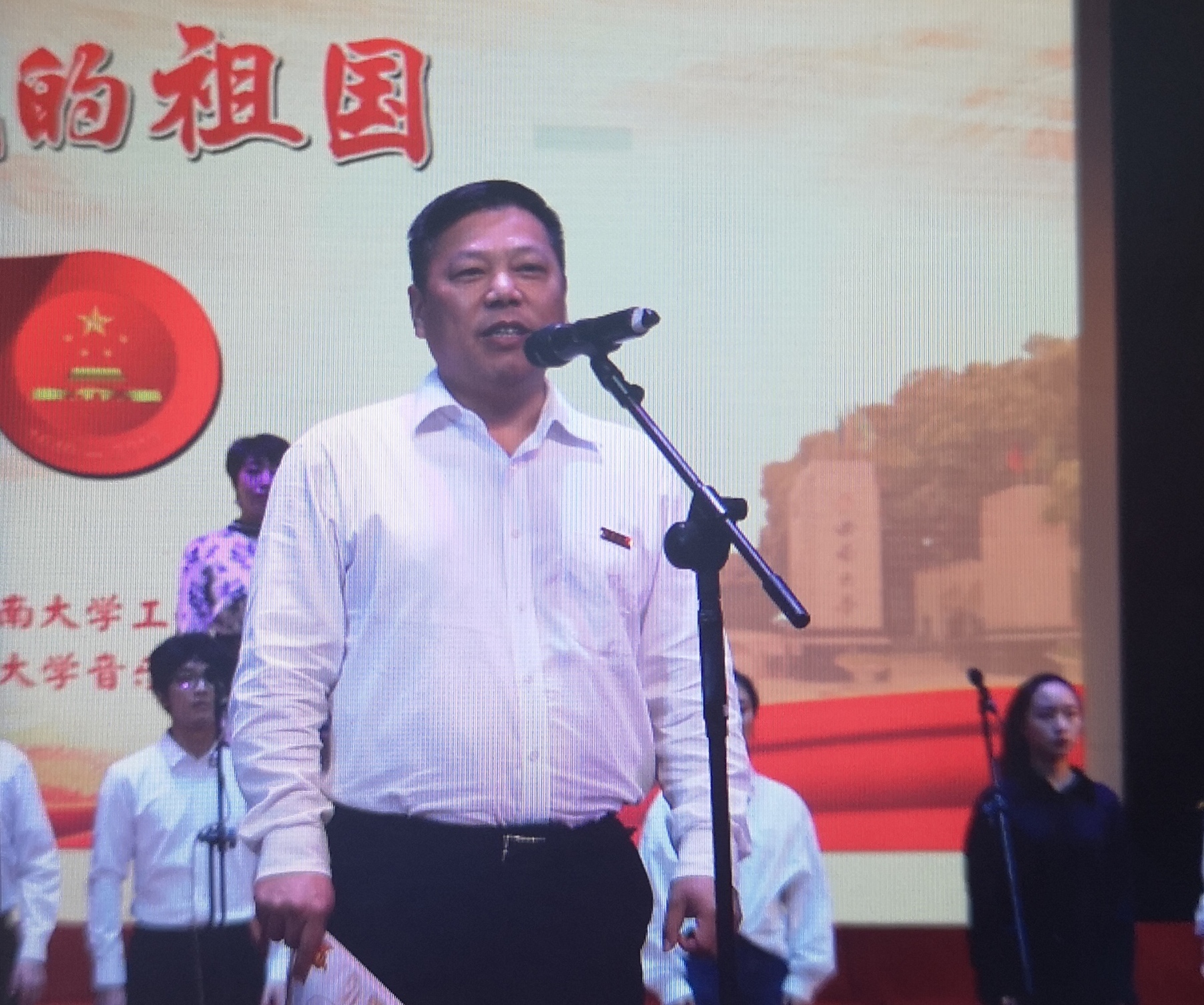 张卫国校长在致辞中预祝合唱比赛取得圆满成功,对广大教职工的积极投入表达了感谢,对大家的爱国热情表示鼓舞,对为比赛辛勤付出的工作人员表示肯定。张校长希望学校能以最美的歌声唱出对祖国母亲生日的祝福,能以最饱满的热情抒发出对新中国成立七十周年的礼赞。