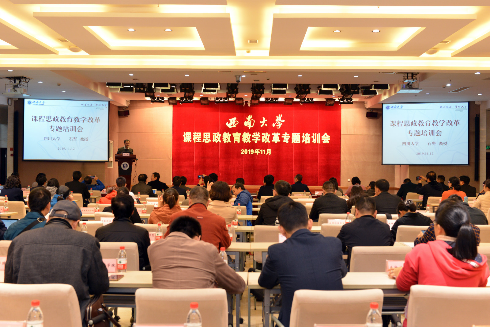 培训会邀请了四川大学首届卓越教学成果奖特等奖获得者、原四川大学副校长石坚教授,围绕课程思政教育教学改革工作和一流本科教育建设工作,以“润物细无声:课程思政与育人”和“立德树人是教育的根本使命:‘质量革命’的川大实践”为题做专题培训。