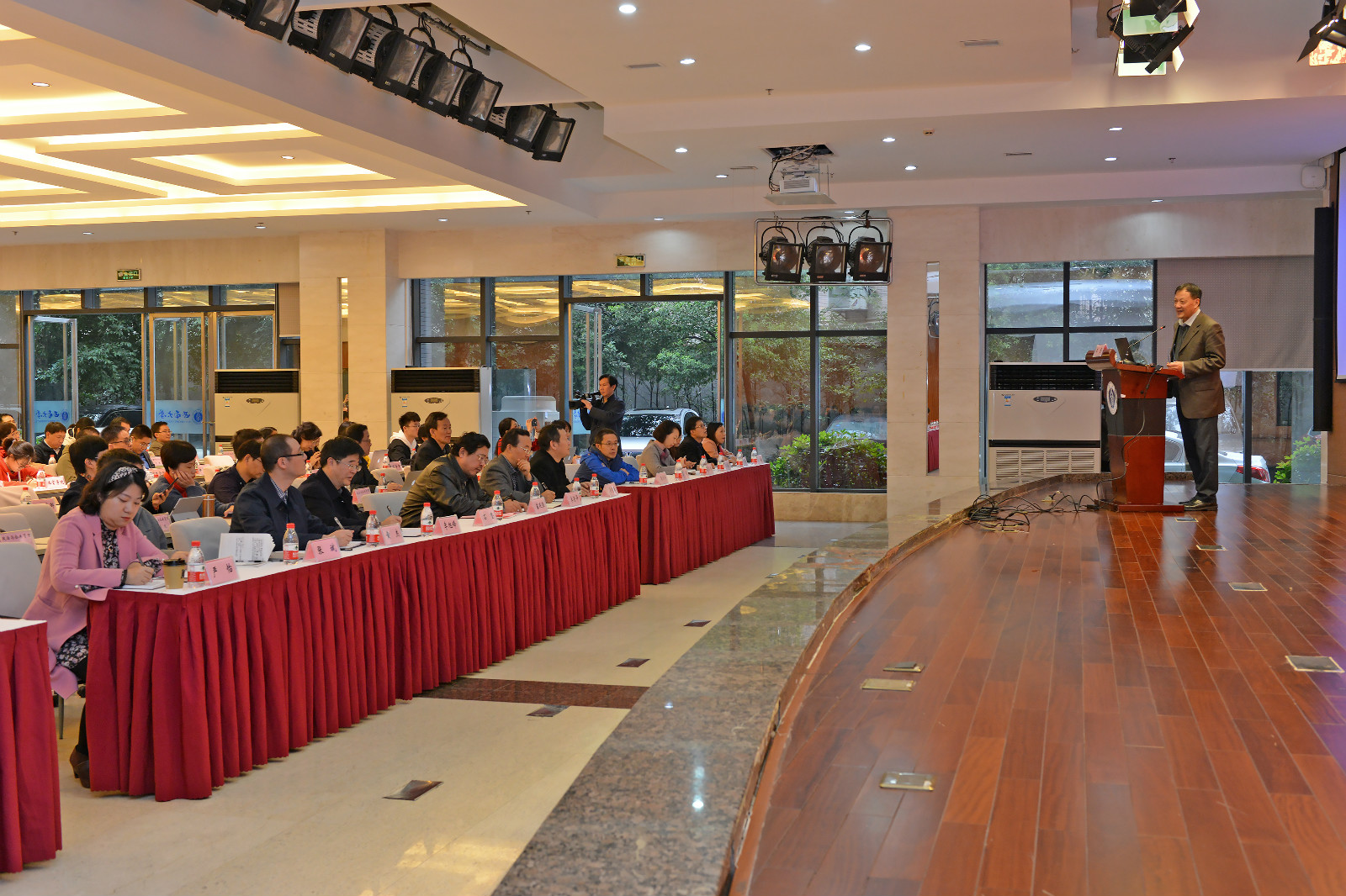 11月12日下午,beat365在线唯一官网登录课程思政教育教学改革专题培训会在国际学院报告厅举行。党委书记李旭锋出席会议。副校长崔延强主持会议。党委办公室、校长办公室、党委宣传部、团委、教务处、党委研究生工作部 研究生院、党委学生工作部 学生工作处、教师教育学院、创新创业学院等单位负责人,各教学单位分管本科教学的副院(部)长、专业负责人、教研室主任、专业核心课程项目负责人、课程思政项目负责人等近200人参加培训。