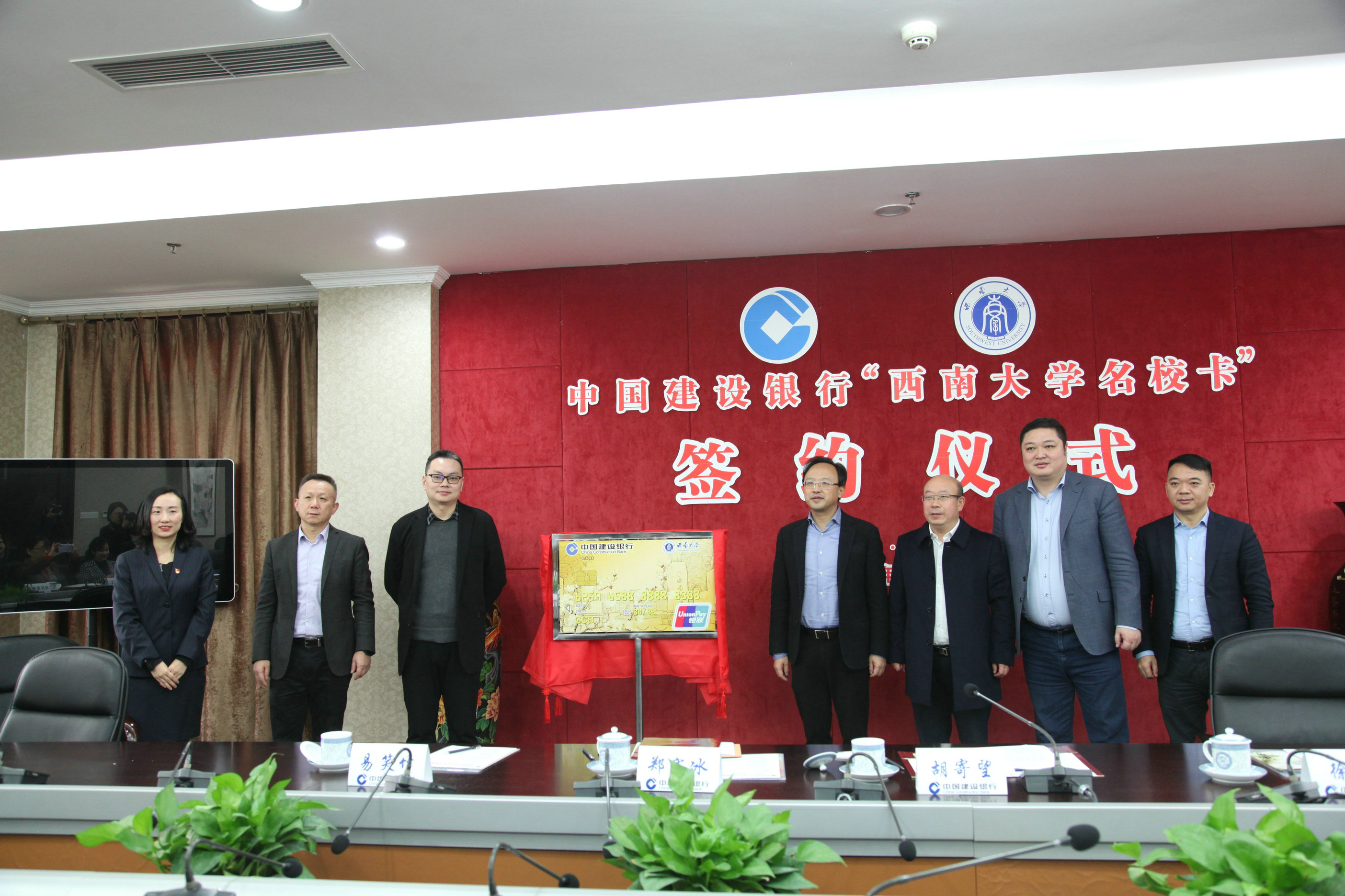 仪式上,龚常智部长介绍了“beat365在线唯一官网登录名校卡”的基本情况。温涛副校长代表学校与建行签订合作协议。会议随后举行“西大龙卡”卡样揭牌仪式。