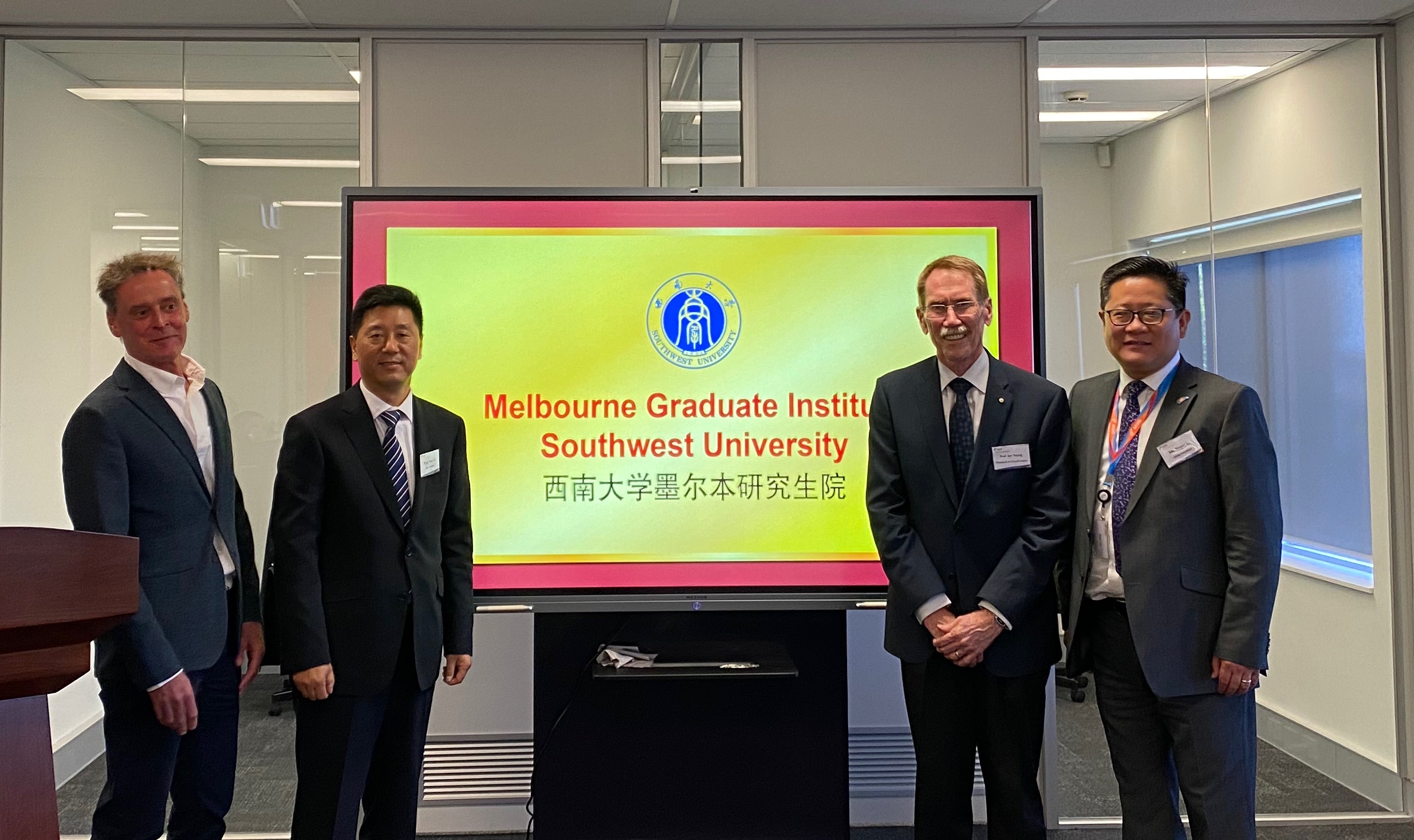 12月12日,beat365在线唯一官网登录墨尔本研究生院(Melbourne Graduate Institute,简称MGI)揭牌仪式在澳大利亚教育管理集团(AEMG)举行。学校副校长靳玉乐、AEMG总裁李新庆等相关负责人、前澳大利亚国立大学校长Ian Young、弗林德斯大学副校长Mike Kyrios、塔斯马尼亚大学常务副校长Rob Wilson、悉尼科技大学创新数字中心创始人周万雷等40余位中澳知名院校专家教授、业界代表齐聚一堂,一同见证了学校教育国际化的又一里程碑。