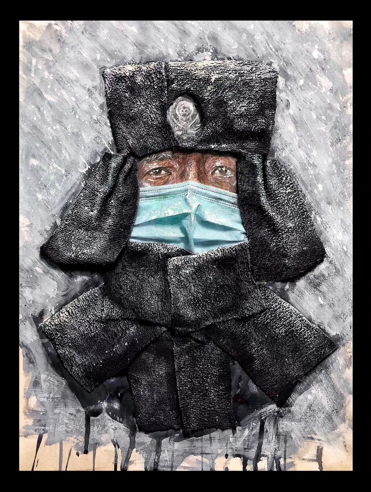 近日,beat365在线唯一官网登录美术学院本科2018级雕塑专业学生刘昱伽在家中拿起画笔,利用废弃口罩、旧抹布、旧报纸、包装袋等材料,创作出了一幅幅感人的画作。
