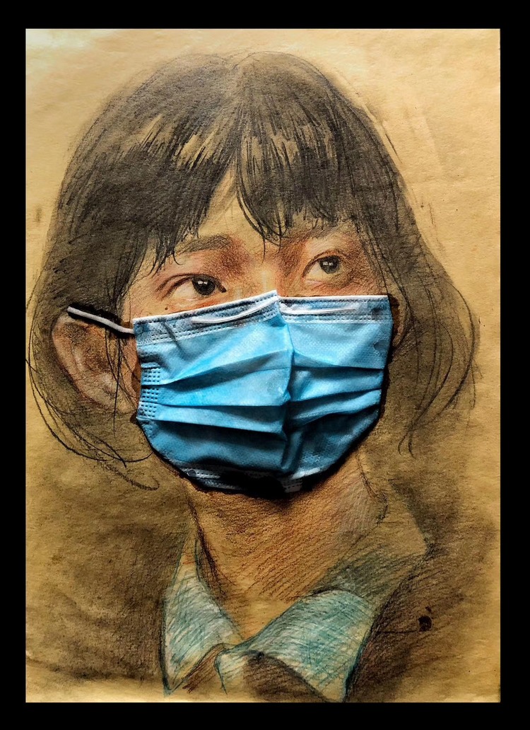 图为刘昱伽的美术创作《隔离日记——坚守》