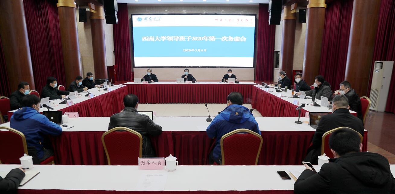 会议围绕安春元副书记汇报的“巩固拓展‘不忘初心、牢记使命’主题教育成果,推动基层党建工作提质增效”“全力推进干部工作‘五大体系’建设,为学校事业发展提供坚强组织保证”,李华副书记汇报的“准确把握政治监督内涵 推进政治监督具体化常态化”,潘洵副书记汇报的“突出‘五个聚焦’深入推进新形势学生思想政治教育工作”“积极应对 全力做好学生就业工作”,陈时见副校长汇报的“教师学术评价的认识与改进”,靳玉乐副校长汇报的“紧紧围绕重点工作 不断提高人才培养质量”,崔延强副校长汇报的“规划‘十四五’、聚焦‘双一流’建设一流哲学社会科学”,王进军副校长汇报的“凝心聚力 深化改革 全力推动科研工作上台阶”“聚全校力量做好定点扶贫工作”,温涛副校长汇报的“加强基建队伍建设 推进专业化管理”等2020年重点工作进行了深入研讨。同时,会议还研究了“实验动物中心项目申报”和“荣昌校区‘提质扩容’基本建设”等有关事宜。