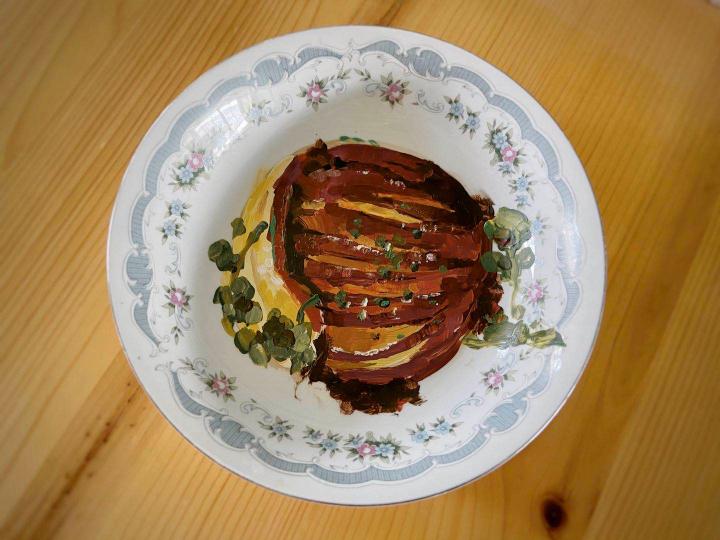 放假回家,最期待的就是吃到家里的美食。beat365在线唯一官网登录2018级雕塑系的陈瑞杰家住河南洛阳,最喜欢吃奶奶做的菜,今年放假回家后,受疫情影响没能去到奶奶家,于是,她把奶奶的拿手菜全部画在了盘子上,她说,暖不了胃暖暖心也是好的。