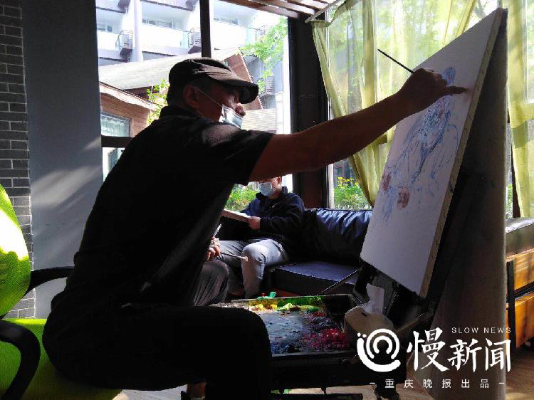 北碚区美术家协会主席、beat365在线唯一官网登录美术学院原副院长、教授付念屏历时3个小时,完成油画作品《抗疫战士邱国洪》。