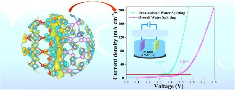 从化石燃料经济向氢能源经济转变需要高效的制氢技术,目前电解水制氢是最具应用前景的制氢方法。但是在电解水制氢过程中,阳极析氧反应动力学过程缓慢,反应过程需要较大的电极电压驱动反应才能进行。因此,该课题组采用阳极氧化电位较低的尿素分子取代反应动力学慢的水分子,这个方法不仅大幅降低了电极电压,而且能够通过降解其中的尿素实现废水净化。