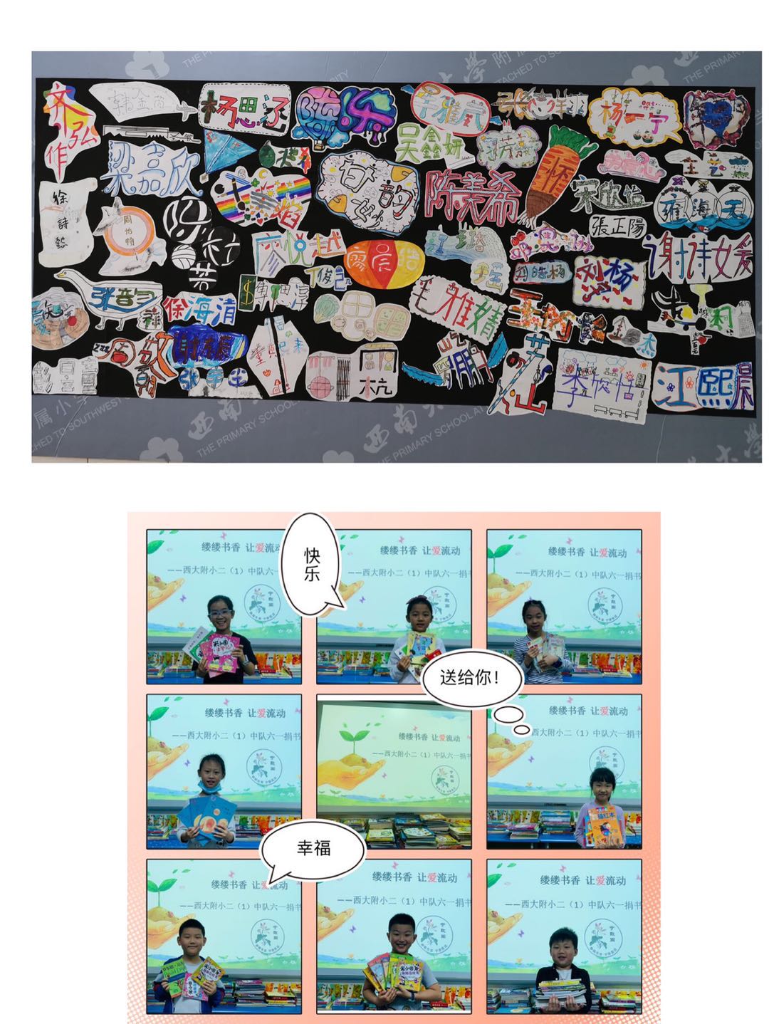 附小师生共同观看“疫路童心,别样精彩”六一特别节目。两个校区的全年级学生为庆祝节日举办了美术作品展和科技作品展,“疫”后校园里,学生共同用艺术与科技装点美好生活。各个年级准备的别出心裁的礼物和创意,更加增添了节日的欢愉气氛。同时,附小积极响应学校扶贫工作号召,牵手云南昌宁小学,组织班级开展图书捐赠爱心活动。