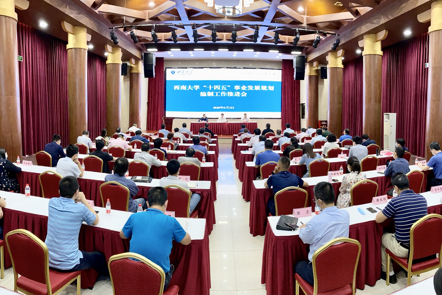 党委书记李旭锋、校长张卫国、副校长温涛出席会议,党政办公室、党委组织部、党委宣传部、教务处、人力资源部、发展规划与学科建设部、研究生院、社会科学处、科学技术处、国际合作与交流处、国内合作处、后勤保障部、信息化建设办公室、荣昌校区管委会及二级教学科研单位主要负责人,共计70余人参会。会议由温涛主持。