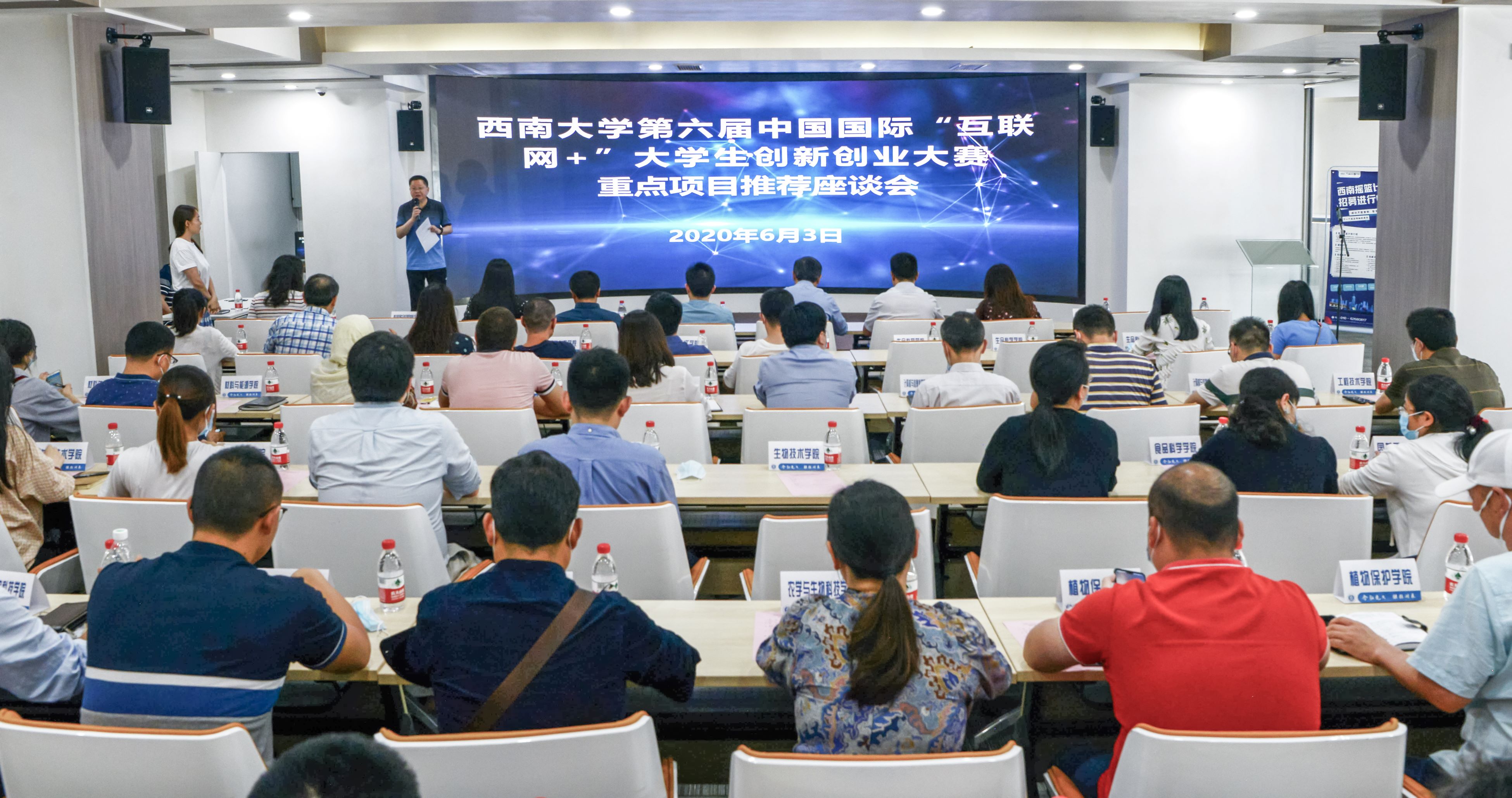 6月3日下午,学校在产业技术研究院报告厅举办第六届中国国际“互联网+”大学生创新创业大赛重点项目推荐座谈会。学校党委副书记潘洵,相关职能部门、各二级学院(部)主要负责人、重点项目团队及指导教师等参加会议,座谈会由创新创业学院负责人主持。