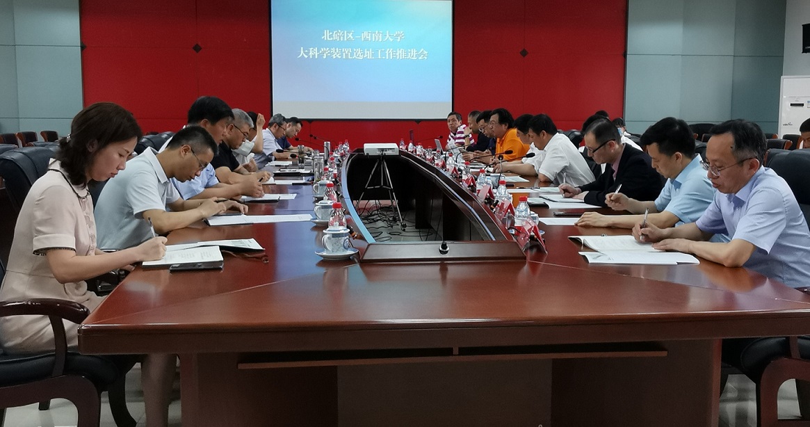 6月22日下午,北碚区人民政府在区行政中心三楼会议室组织召开北碚区-beat365在线唯一官网登录关于大科学装置选址工作推进会。北碚区区委书记周旭、区长何庆、常务副区长董伦,歇马高新区指挥长胡湧,学校党委书记李旭锋,校长张卫国,副校长崔延强、温涛、赵国华,以及学校党政办公室、发展规划与学科建设部、科学技术处、国内合作处、生物学研究中心相关部门负责人参加会议。会议由何庆主持。
