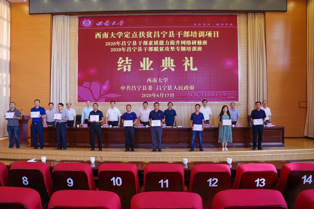 结业式在昌宁县委党校在昌宁县委党校举行。校长张卫国,副校长王进军、赵国华及党政办公室、国内合作处、培训与继续教育学院等单位负责人,昌宁县委书记苏格非,副书记张涛等出席仪式。王进军副校长主持仪式。