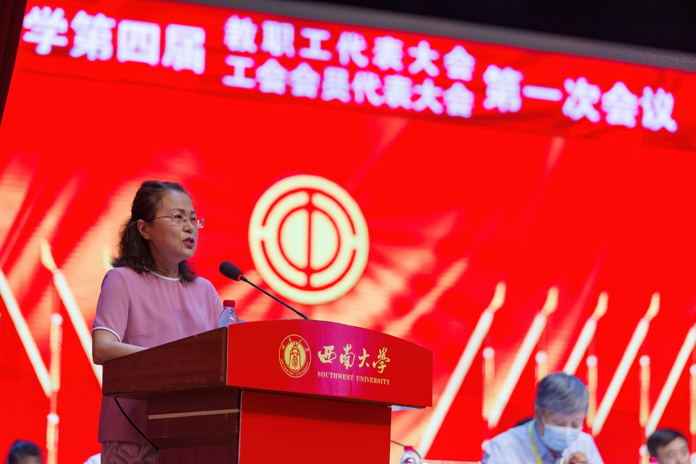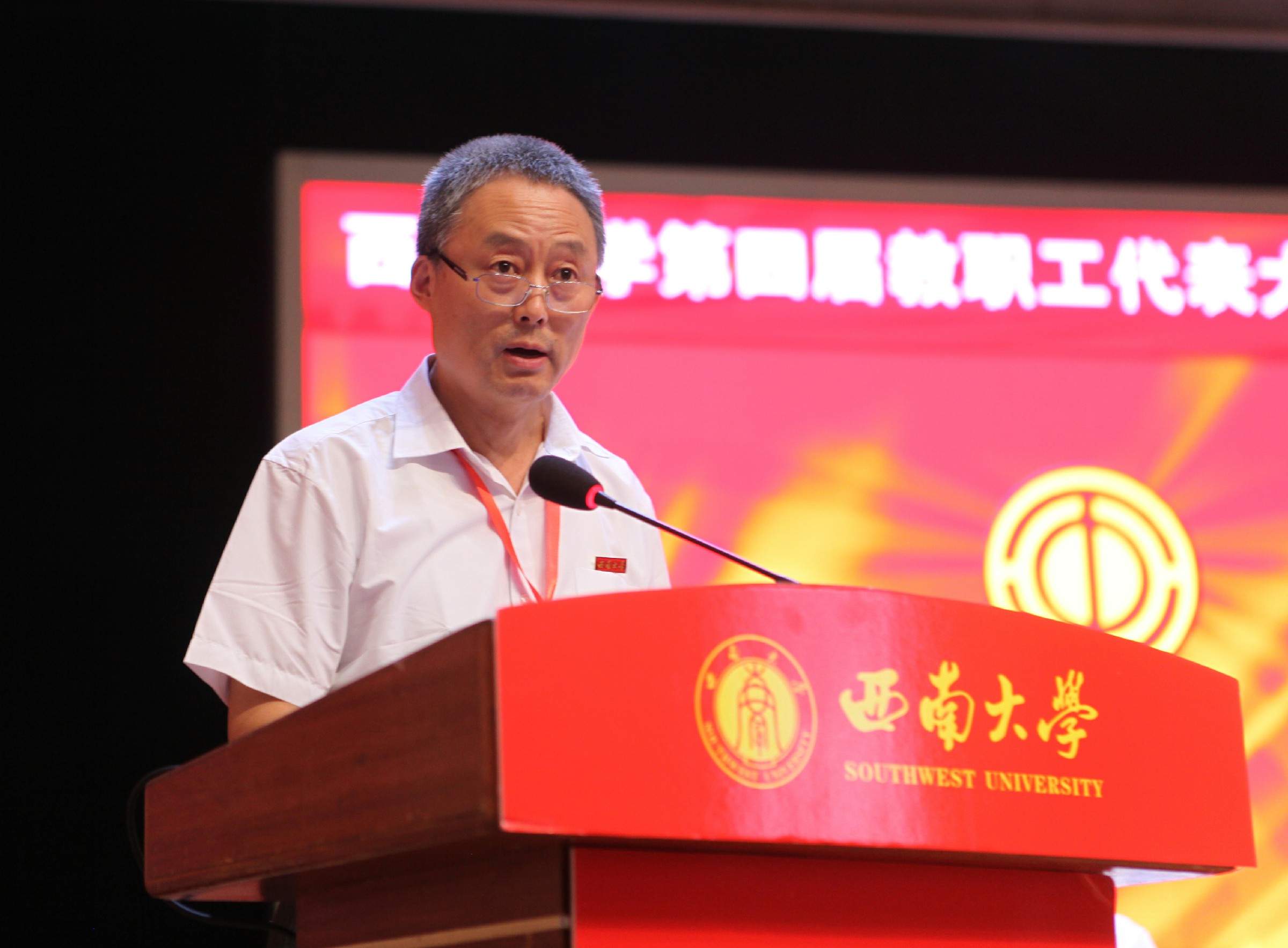 重庆市总工会一级巡视员、重庆市教科文卫体工会主席杨军波致辞,预祝大会圆满召开。杨军波充分肯定了beat365在线唯一官网登录第三届工会在学校党委的正确领导和行政的重视支持下,紧紧围绕学校中心工作,自觉服务学校发展大局,在引领教职工思想、助力教职工建功立业、推进健全规范化民主管理、促进校园文化建设、开展教职工文化体育活动、关心关爱教职工等方面卓有成效的工作。并对学校工会的开展提出三点建议:一是履行政治责任,团结带领职工群众坚定不移听党话、跟党走。二是紧扣时代主题,组织动员广大教育工作者立足本职建功立业。三是真诚服务职工,不断提升职工群众的获得感、幸福感、安全感。