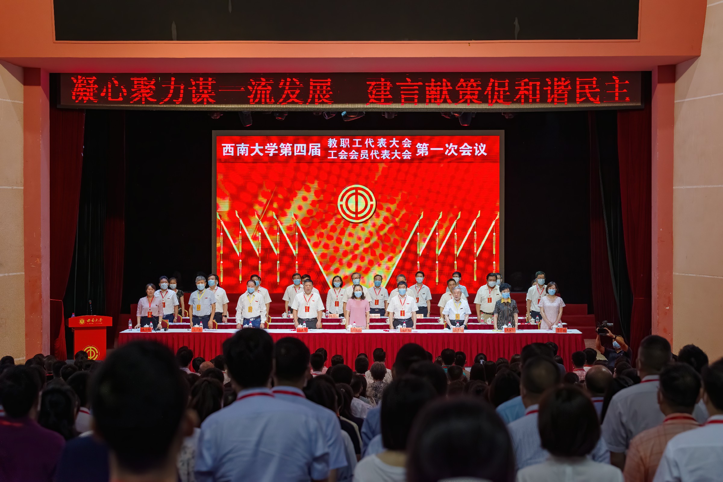 按照中华全国总工会《基层工会会员代表大会条例》(总工发〔2019〕6 号)文件要求,工会会员代表大会和教职工代表大会分别召开。本次工代会主题是:以习近平新时代中国特色社会主义思想为指导,深入贯彻党的十九大和十九届二中、三中、四中全会精神及全国总工会十七大精神,按照学校第三次党代会确立的奋斗目标和任务部署,认真履行维护、建设、参与、教育职能,提高服务工作质量,深化工会改革创新,团结动员广大教职工为建设特色鲜明的世界一流大学努力奋斗。教代会的主题是:以习近平新时代中国特色社会主义思想为指导,深入贯彻党的十九大和十九届二中、三中、四中全会精神,推进落实学校第三次党代会工作部署,凝聚思想共识,坚定发展自信,为建设特色鲜明的世界一流大学努力奋斗。