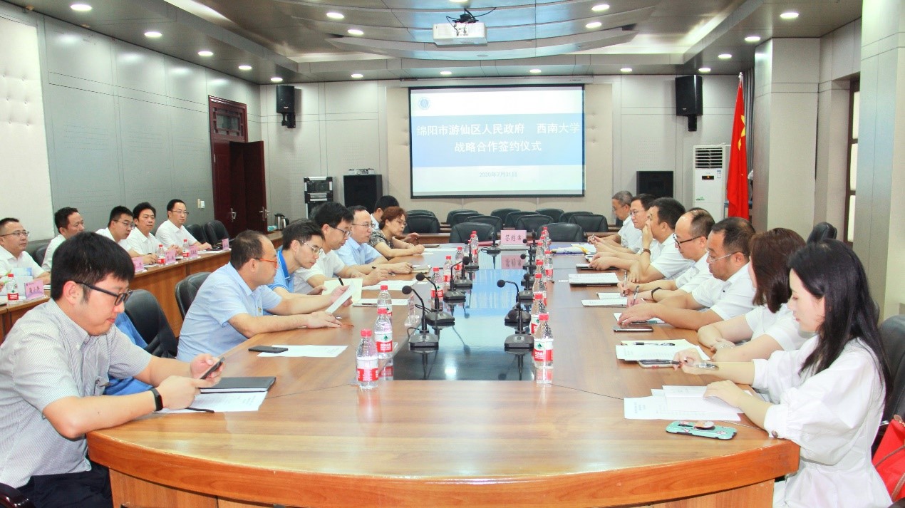为服务成渝地区双城经济圈建设,促进校地融合发展,7月31日,学校与绵阳市游仙区签署合作协议。游仙区委书记江彬,区委常委、组织部长唐兴成,副区长林檬,学校副校长赵国华出席签约仪式。签约仪式由学校国内合作处处长程龙主持。