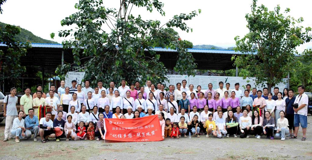 今年暑假,历史文化学院 民族学院田阡教授带领“记住乡愁,脱贫攻坚”社会服务工作队抵达昌宁县湾甸乡,扎实开展以“撰写一本村史村志,打造一批民族生态博物馆,资助一名傣族家庭学生,支持一个傣学研究会,组建一支傣族歌舞队”为主要内容的“五个一”系列帮扶活动。