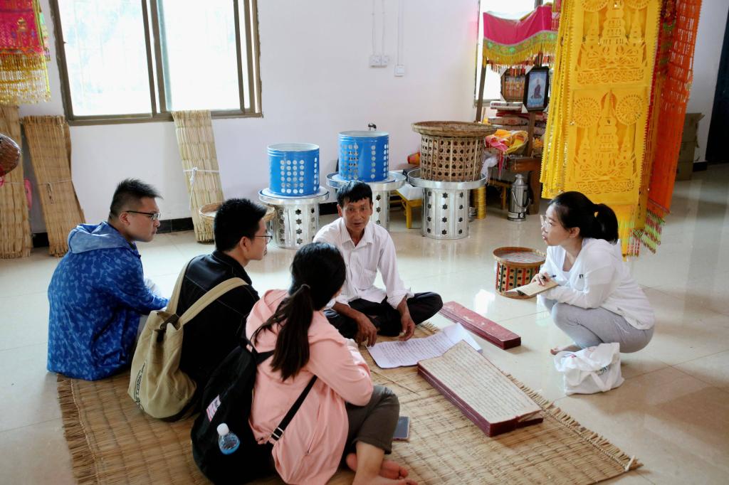 当地群众由于专业知识匮乏,对民族文化历史的传承较为担忧。工作队当即决定在当地建立beat365在线唯一官网登录历史文化学院民族学专业实习实践基地,从人力、智力、财力等方面全力支持当地傣学研究会的建设与发展,充分发挥学科专业优势,深度挖掘当地傣族的历史文化,全方位地考察当地傣族的民族风俗、民族语言、民族服饰、民族艺术等,全面梳理当地傣族与周边的汉族、苗族、布朗族、白族等少数民族在历史发展进程中交往交流交融的历史痕迹,为弘扬民族文化,创新推进民族团结进步事业奠定坚实基础,为铸牢中华民族共同体意识提供现实样本。