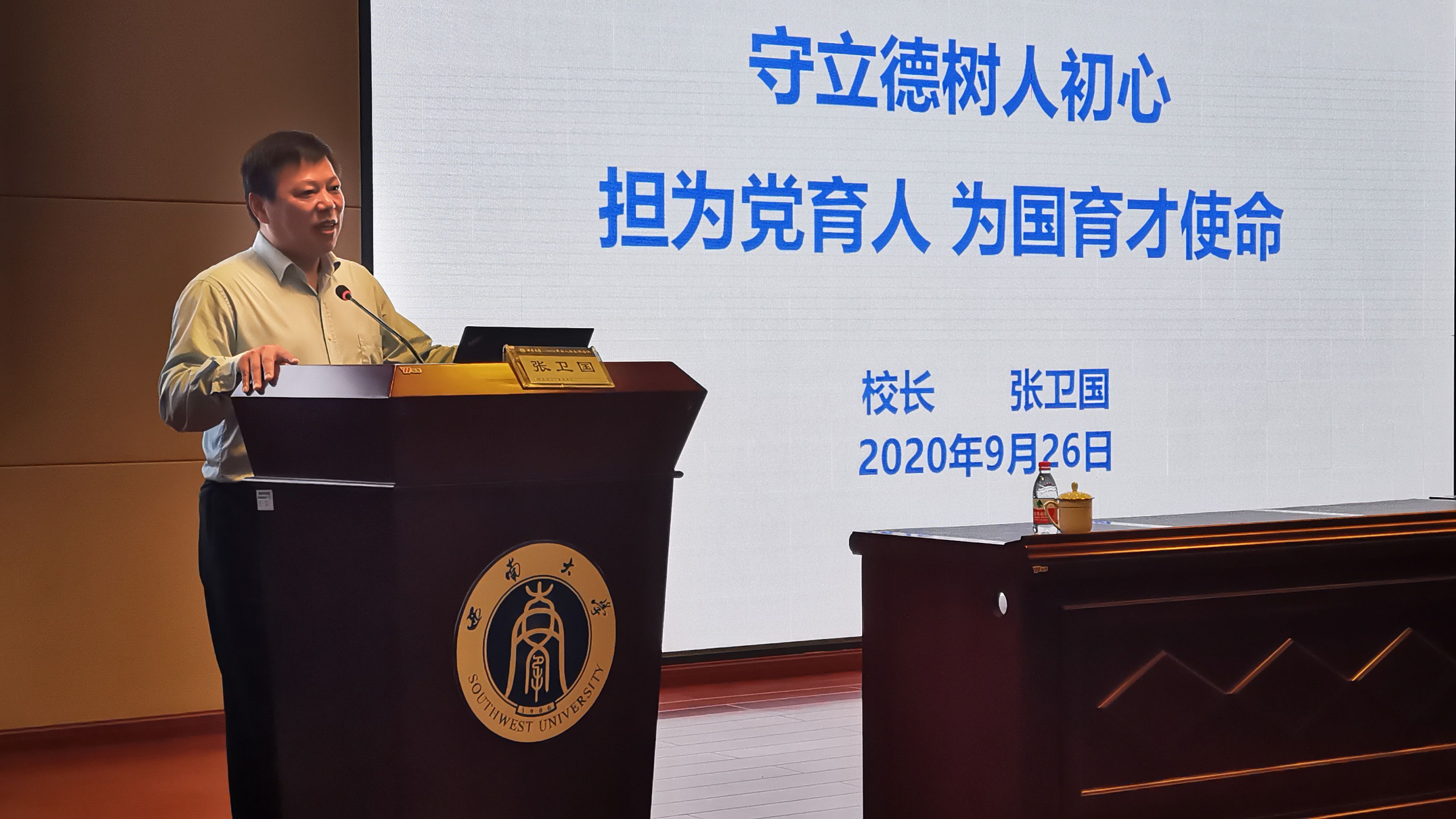 9月26日上午,学校2020年新教师入职培训开班典礼在校史馆报告厅举行。出席此次开班典礼的有校长张卫国、副校长陈时见,学校党委组织部、人力资源部、党委教师工作部、教务处、教师教学发展中心相关负责人及全体参训新教师。