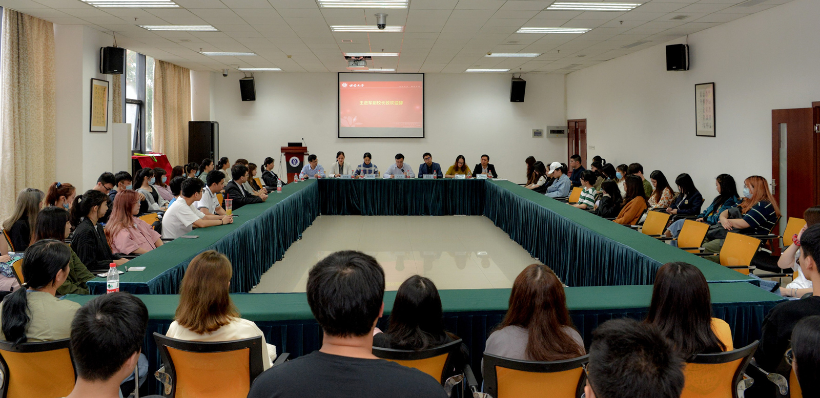 9月28日下午, 2020级港澳台新生见面会暨2019年度港澳台侨学生奖学金颁奖仪式在国际学院举行。副校长王进军,校团委、教务处、学生工作处、港澳台办公室、保卫处等相关职能部门负责人出席会议,16名2019年度港澳台侨学生奖学金获得者及37名港澳台新生参加会议。