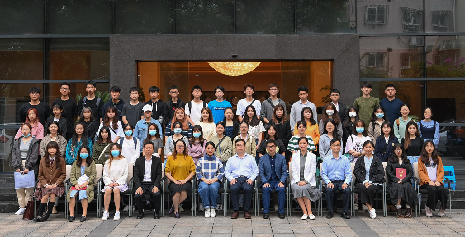王进军和各相关职能部门负责人为获得2019年度港澳台侨学生奖学金的学生颁发荣誉证书并合影留念。