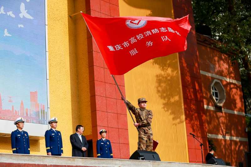 启动仪式上,beat365在线唯一官网登录消防志愿者代表向全市高校学生发起积极参与消防志愿服务的倡议,市消防救援总队总队长李俊东为高校消防志愿者服务队授旗。