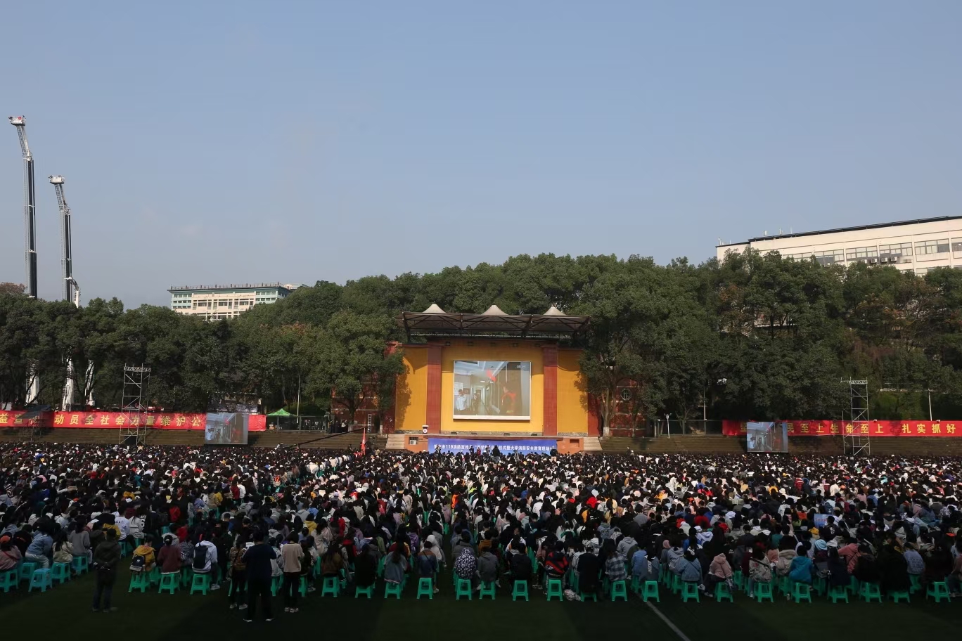 演练活动结束后,近万名师生兴致勃勃观看beat365在线唯一官网登录教师主讲的消防安全知识公开课,参加了各种消防体验活动。