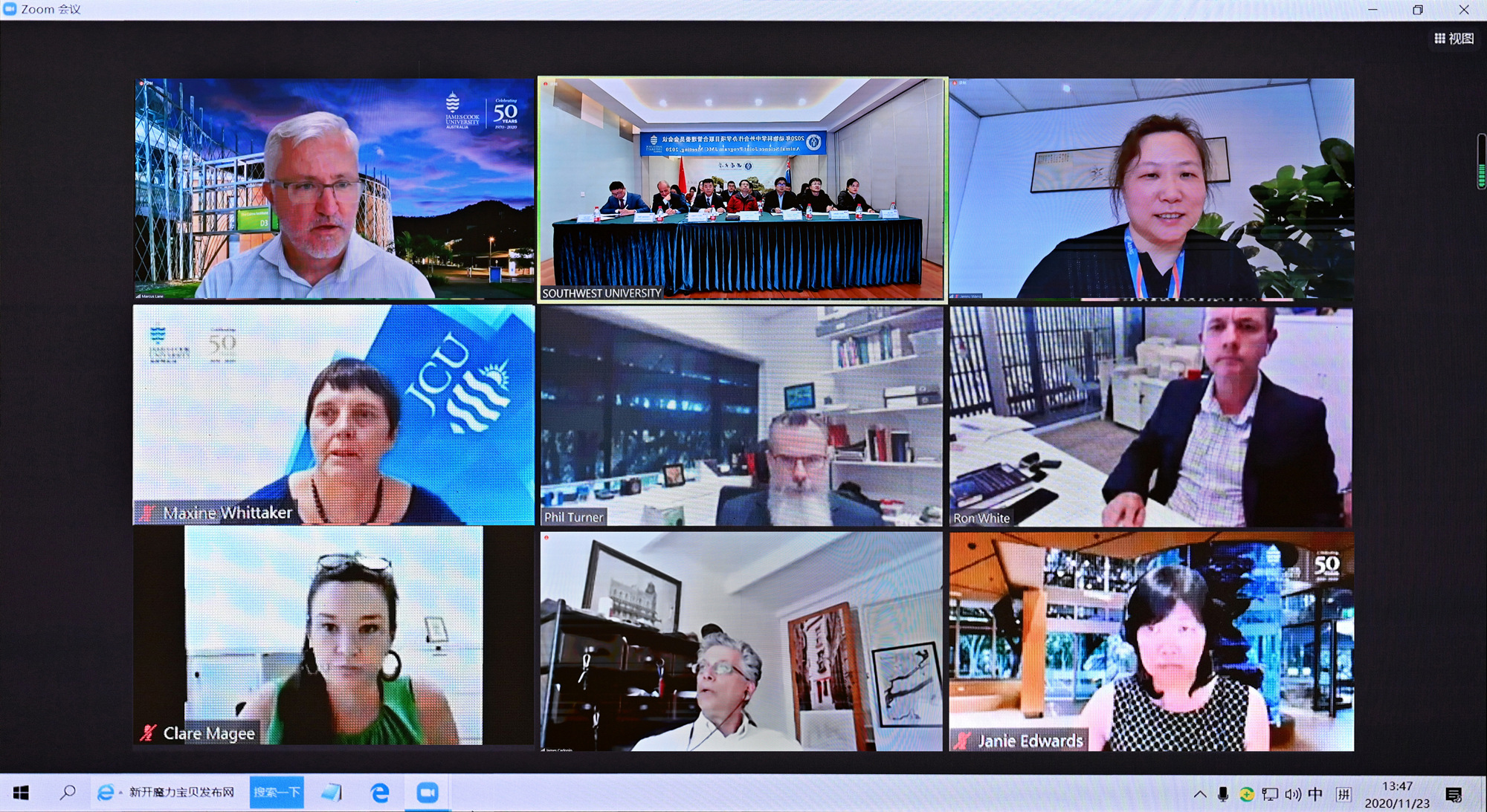 11月23日,学校与澳大利亚詹姆斯库克大学动物科学专业中外合作办学项目联合管理委员会(简称JMC)首次会议以线上线下结合的形式顺利召开。学校副校长王进军和詹姆斯库克大学副校长马尔库斯•莱恩出席会议。学校人力资源部、教务处、国际合作与交流处、动物科学技术学院负责人,詹姆斯库克大学国际部、公共卫生与兽医学部和理学与工学学部的负责人,以及澳大利亚教育管理集团相关负责人参加会议。