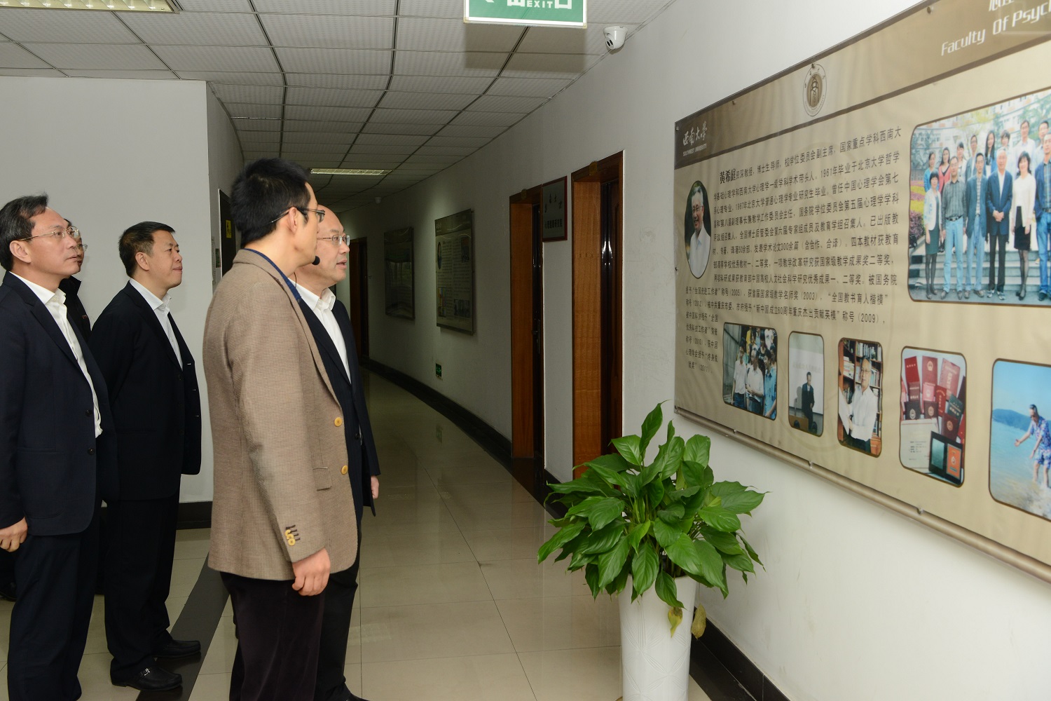 王正谱走进校史馆,了解beat365在线唯一官网登录发展沿革,对百余年来学校在人才培养、科学研究、社会服务、文化传承等方面的积淀和成绩给予充分肯定。随后,他来到家蚕基因组生物学国家重点实验室,了解实验室科研成果、人才队伍建设等情况,观看并体验实验室与四川多家龙头企业合作研发产品,认为其在推动“产学研”融合和引领现代蚕桑产业发展方面颇有特色。在认知与人格教育部重点实验室,王正谱观看了眼动、生物反馈、痛觉、行为观察等实验,对学校认知与人格心理学取得的研究成果表示赞赏。