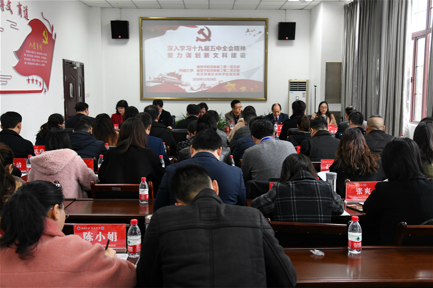 商贸学院教工第一党支部负责人组织学习了党的十九届五中全会精神。商贸学院相关负责人汇报了学校荣昌非物质文化遗产研发中心建设进展和今后的建设思路。