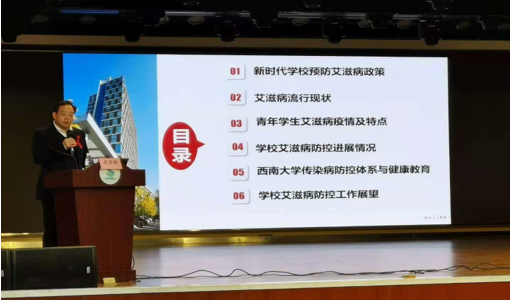 讲座上,校医院主要负责人从新时代学校预防艾滋病政策、青年学生艾滋病疫情及特点着手结合长期的工作经验和相关案例分析,就艾滋病流行现状、学校艾滋病防控进展情况、beat365在线唯一官网登录传染病防控体系与健康教育等方面进行了阐述。他表示,校园已成为艾滋病感染的高发区。学校是开展预防艾滋病防治知识教育的重要场所,是向青少年传授预防艾滋病知识的平台。为有效应对青年学生艾滋病疫情增长较快的新形势,应重视对青年学生防艾知识的宣传教育,提升青少年学生对艾滋病的关注度,增强自我保护意识和应对能力。讲座进行过程中,台下与台上不时进行互动,进一步激发了参会人员对如何加强青年学生对艾滋病的认识,提升其自身保护意识等问题的深思。