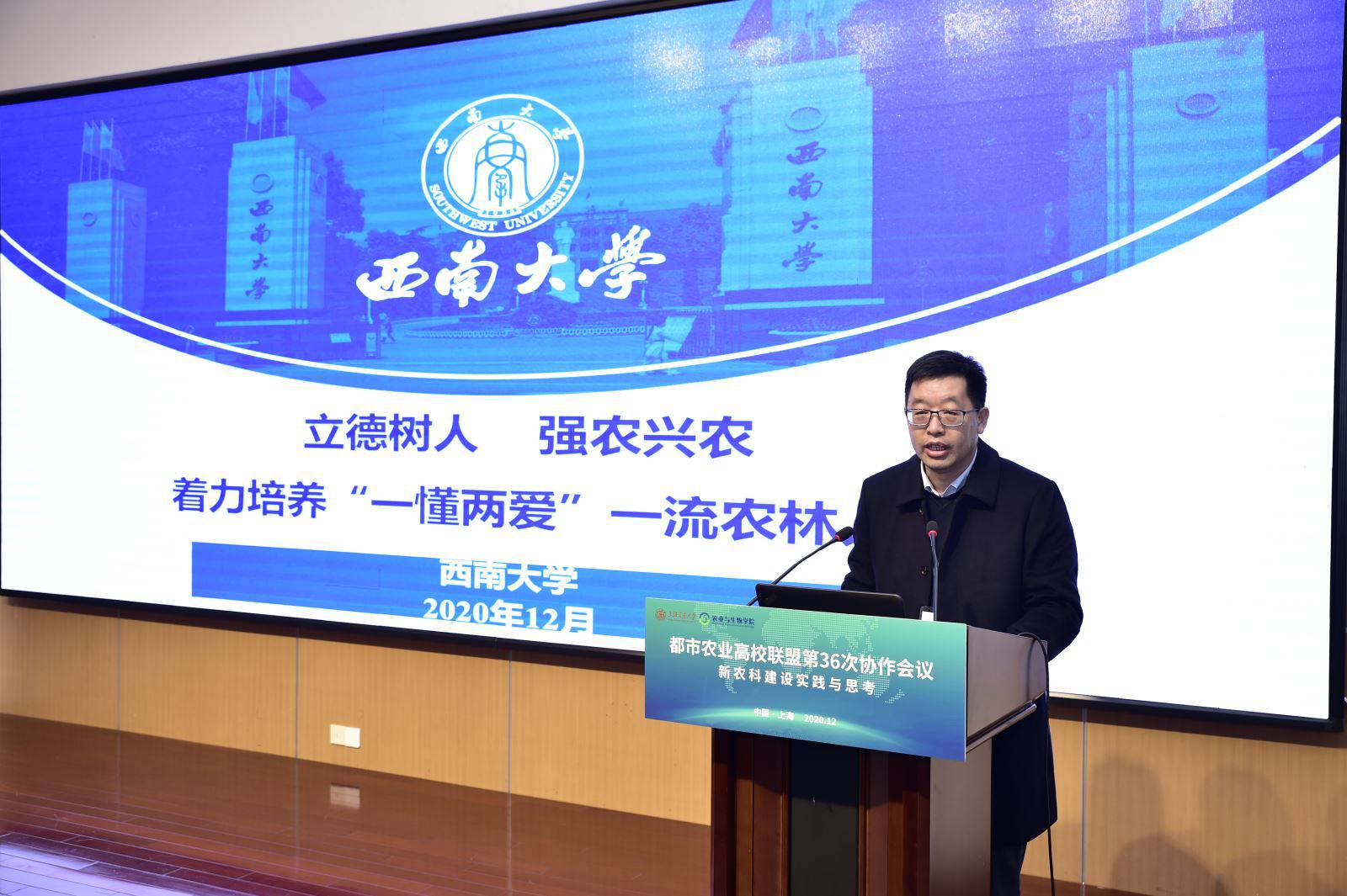 12月11日,都市农业高校联盟第36次协作会议在上海交通大学召开。农业农村部乡村产业发展司副司长周业铮和7所联盟高校领导出席会议,副校长赵国华率党政办公室、教务处、国内合作处等相关职能部门负责人参加会议。