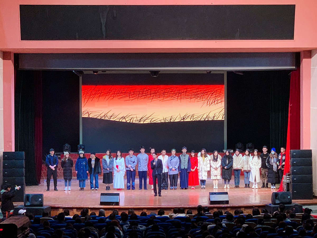 此次在校园戏剧文化周的演出,由文学院2017级戏剧影视文学专业的王荣凯同学担任该剧总导演,新闻传媒学院、心理学部等多个学院部学生参与演出,该剧在悲剧主题中穿插一定的喜剧细节,使之有笑有泪,亦发人深省,整部作品以其深刻的民族性和戏剧性深受现场观众的喜爱。剧组演员们精彩的演绎获得学校师生的一致好评。