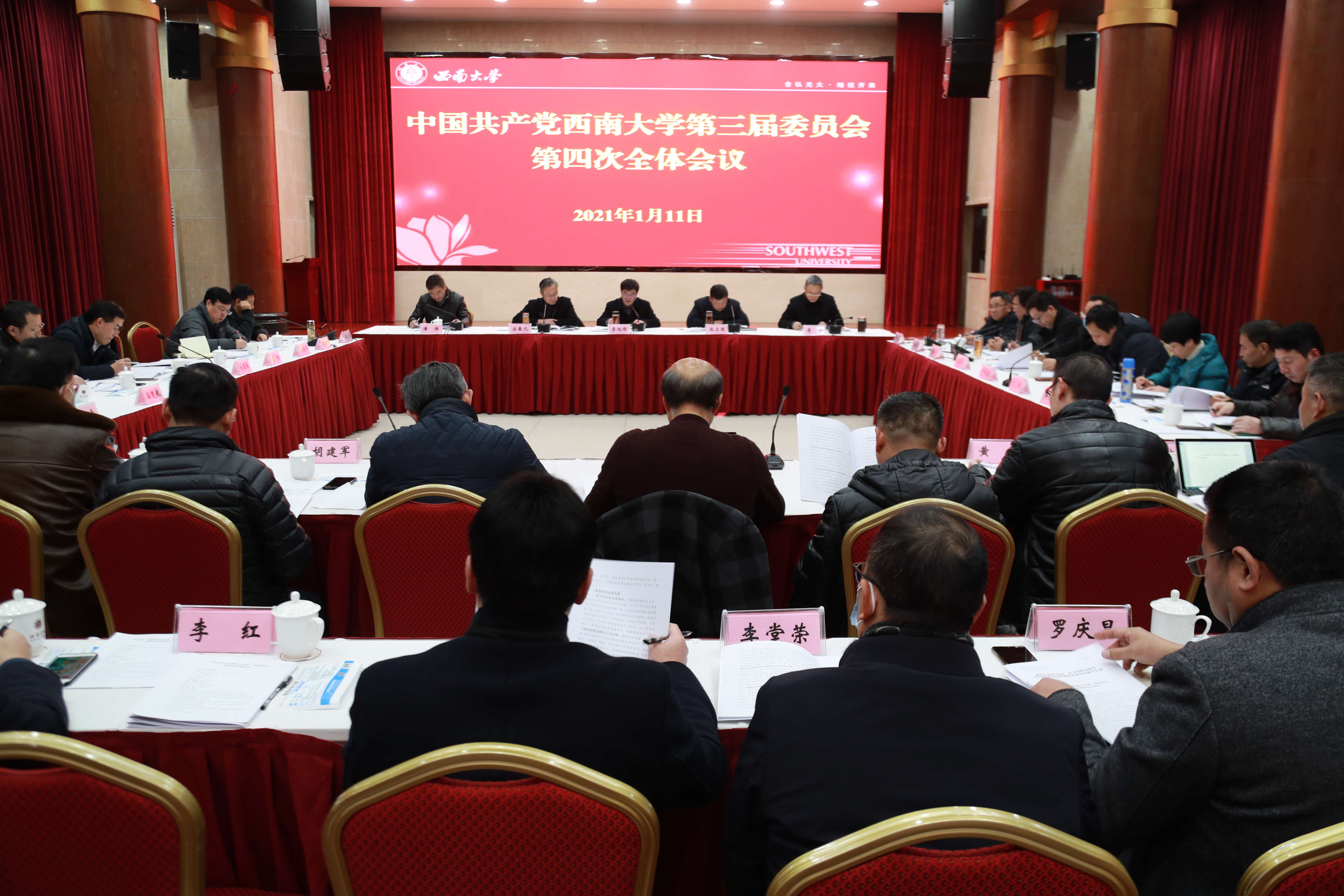 1月11日下午,中国共产党beat365在线唯一官网登录第三届委员会第四次全体会议在东方红会议厅召开,学校党委常委会主持会议,党委委员出席会议,纪委委员列席会议。