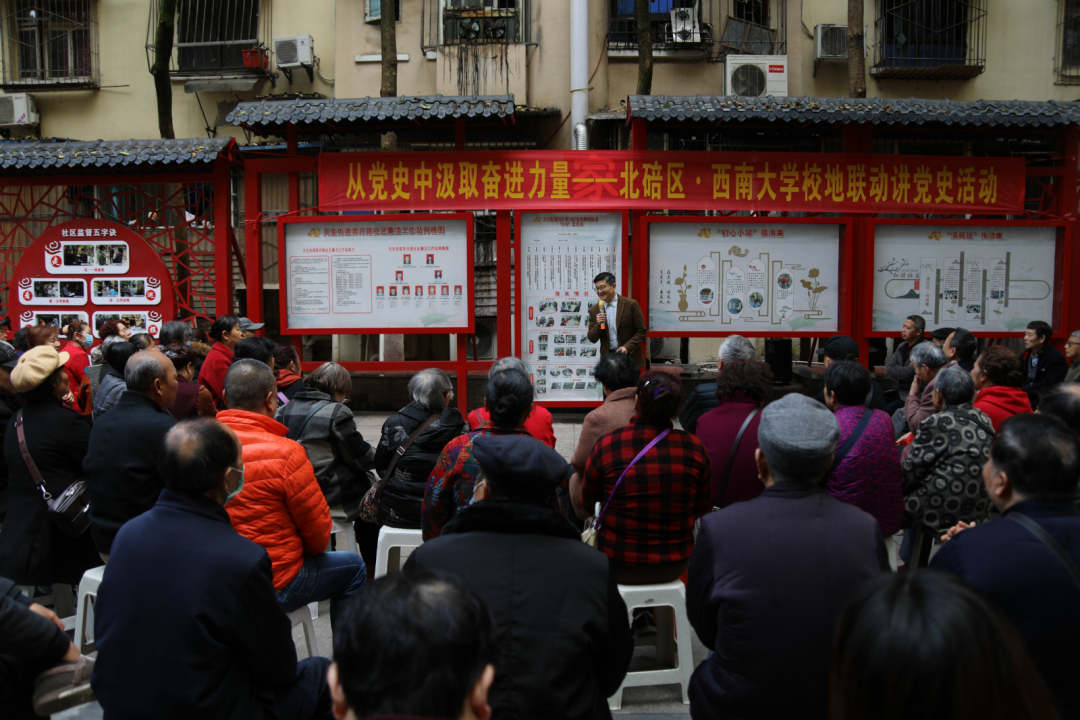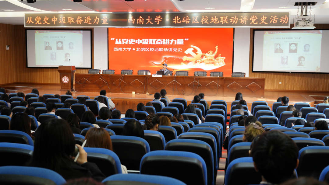 活动现场,区退休干部、党史专家王洪在学校马克思主义学院作了题为《革命时期北碚党组织的贡献与牺牲》的主题报告。他向西大师生讲述了抗战时期北碚党组织建立的历程、抗战中北碚党组织的重大贡献以及解放战争期间北碚党组织的革命活动。