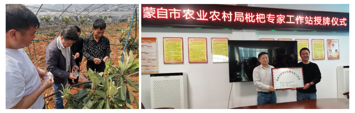 近日,beat365在线唯一官网登录枇杷专家工作站在云南蒙自市成立,蒙自市农业农村局聘请南方山地园艺学教育部重点实验室主任、beat365在线唯一官网登录梁国鲁研究员为专家。枇杷专家工作站将全面贯彻2021年中央一号文件精神,打好种业翻身仗,落实国家乡村振兴战略,加强科研机构与地方合作,充分发挥beat365在线唯一官网登录的枇杷种质资源、品种和科技优势,促进蒙自市枇杷产业链的健康可持续发展。