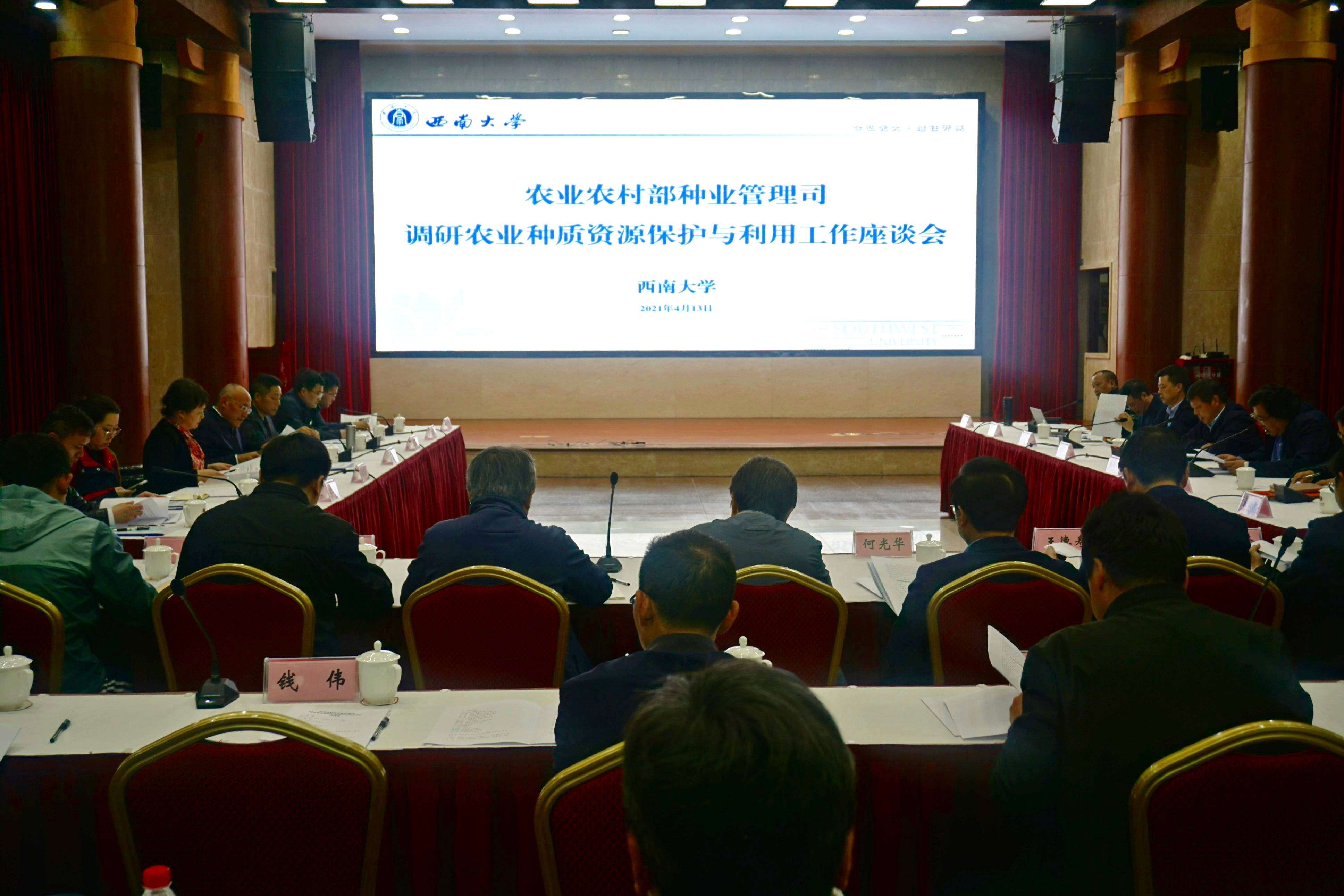 4月13日,农业农村部种业管理司副司长孙好勤一行来校调研种质创制大科学中心建设情况及农业种质资源保护与利用工作。重庆市委农业农村工委委员袁德胜、市农业农村委种业处处长骆凤玲陪同调研,学校校长张卫国、副校长崔延强出席调研座谈会,学校科学技术处及各相关物种团队专家代表参加调研座谈。座谈会由崔延强主持。