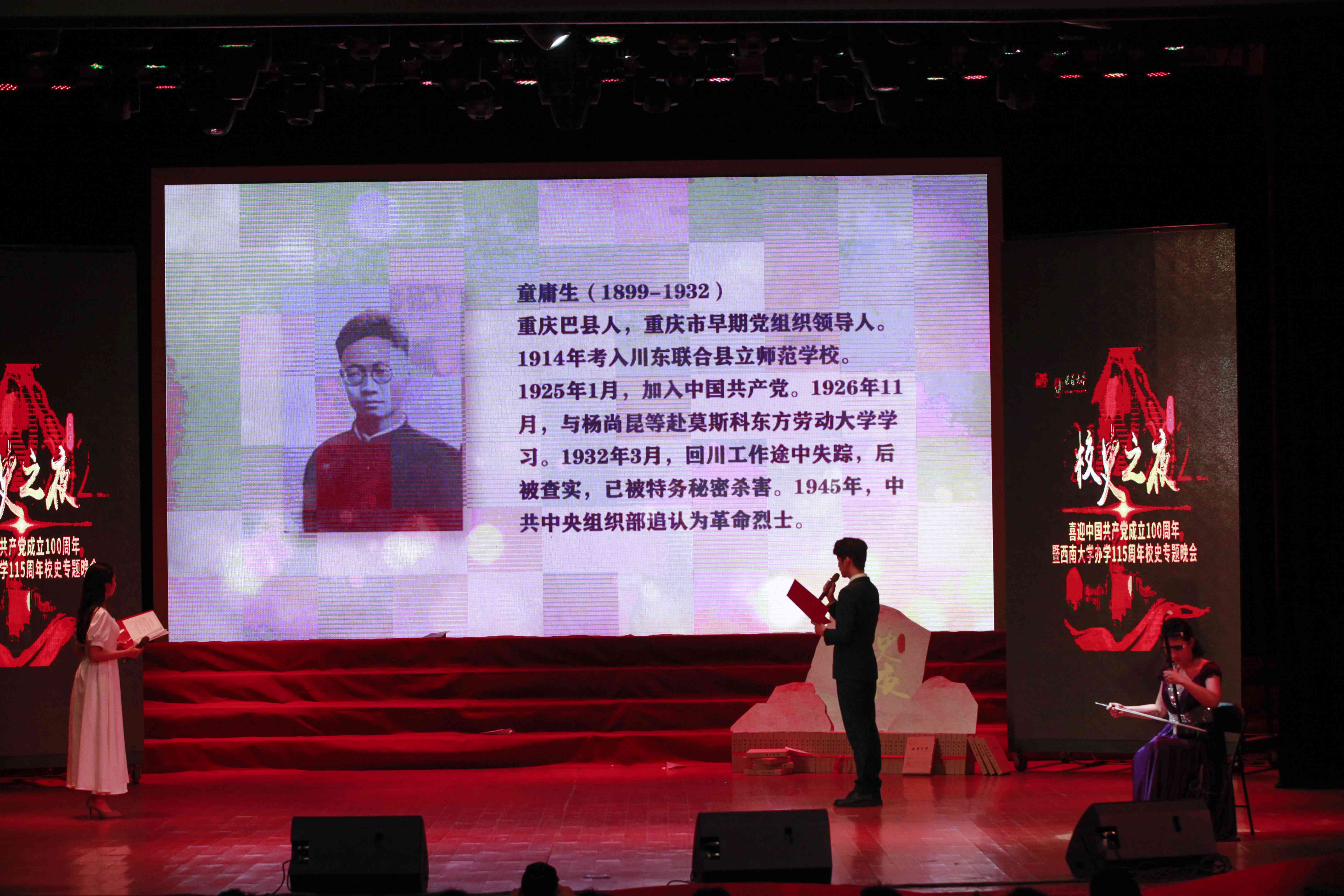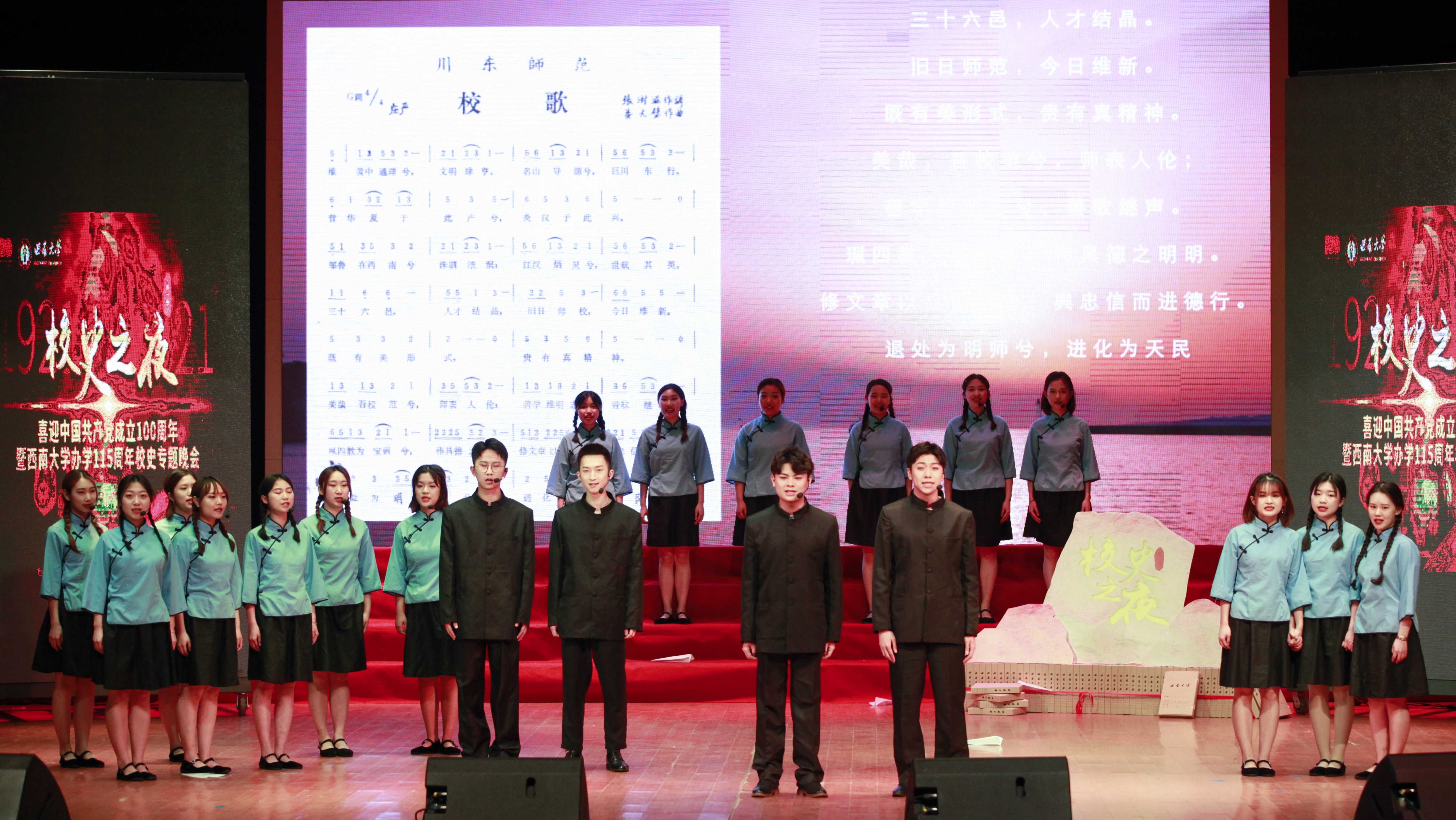 晚会上,学校校史宣讲团学生们重新翻唱了校史上的四首老校歌。最早的川东师范校歌则是百余年后首次被重唱。作为本次晚会分量最重的节目,学校档案馆正式发布了历时三个多月挖掘、查考而梳理出的《beat365在线唯一官网登录校史烈士名录》。为民族独立和解放、为新中国的诞生和保卫新政权而牺牲的26位烈士英雄事迹也首次被发掘出来。