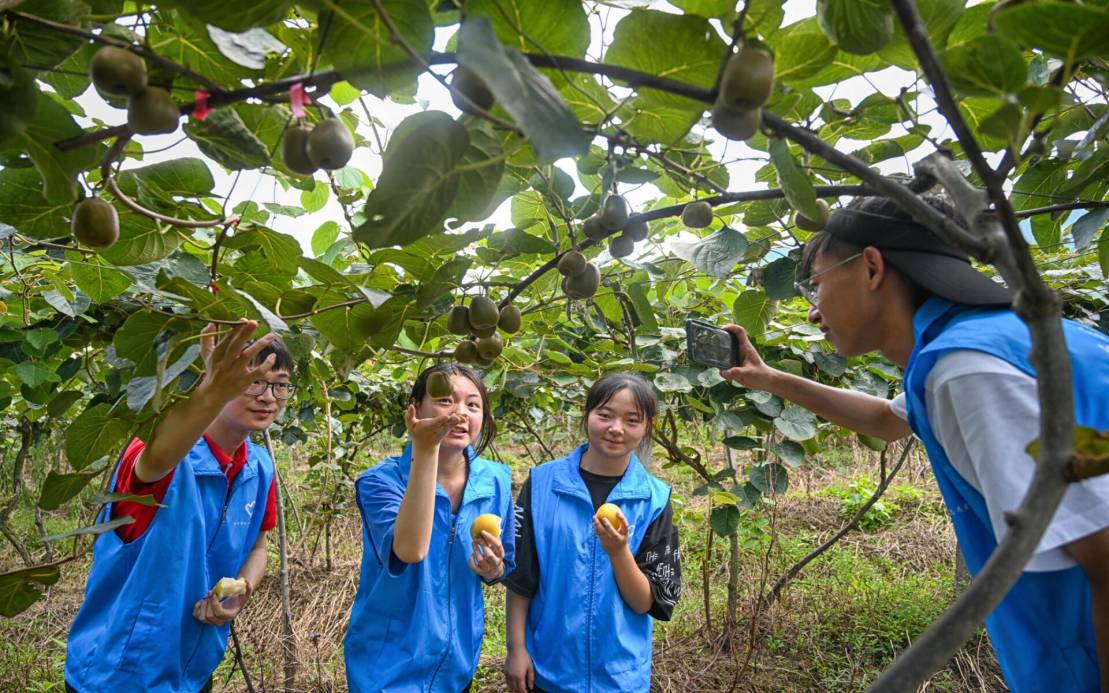 “东升村有几百亩的红心猕猴桃,这里有优美的田园风光,可以边摘边吃……”近日,电子信息工程学院社会实践服务团利用电子信息特长直播带货,帮助柳荫镇东升村出售翠冠梨和红心猕猴桃。不到一个小时的直播,就销售出三百余斤猕猴桃,实践团把如何售后、如何维护好客户关系的方法,一并教给农户们。如此一来,学生们完成理论联系实际的转化,农民们也增强发展农业的信心。