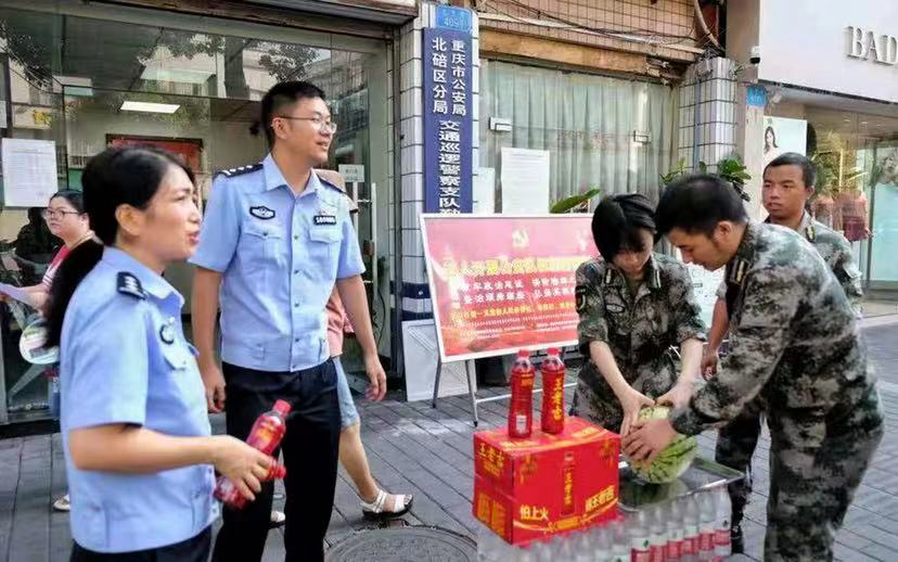 近日,重庆持续高温之下,大学生能做什么?8月4日,作为beat365在线唯一官网登录大学生国防教育示范团队,beat365在线唯一官网登录砺剑班同学们精心准备了西瓜、凉茶、防暑药品,先后到北温泉街道环卫垃圾中转站、交巡警大队交通秩序勤务点、金刀峡镇森林防火检查站、学校门岗和集中健康观察点等地方,为辛勤工作在一线的劳动者们送去清凉。暖心之举受到重庆卫视、重庆之声、华龙网、上游新闻等多家媒体广泛关注。