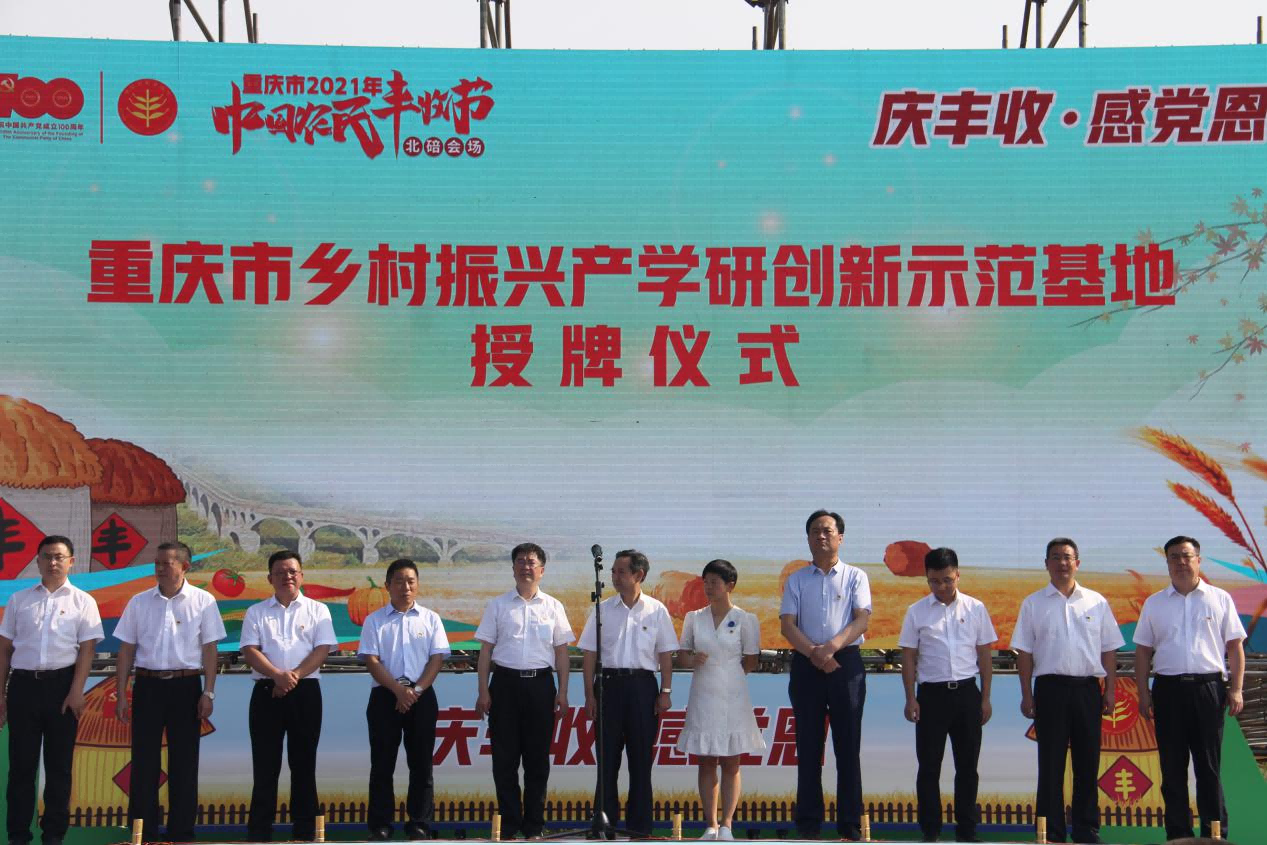 开幕式上,夏祖相宣布重庆市2021年中国农民丰收节(北碚会场)开幕。王进军代表学校与市乡村振兴局、中国科学院地理科学与资源研究所、北碚区人民政府签订中国西部(重庆)乡村振兴研究院合作备忘录。现场还进行“中国西部(重庆)乡村振兴研究院”“重庆市乡村振兴产学研创新示范基地”的授牌仪式,王进军代表学校接受“中国西部(重庆)乡村振兴研究院”授牌。开幕式上还正式发布北碚区农产品区域公用品牌“好品碚出”,并以文艺表演、特产展销、趣味比赛等方式,欢庆2021中国农民丰收节。