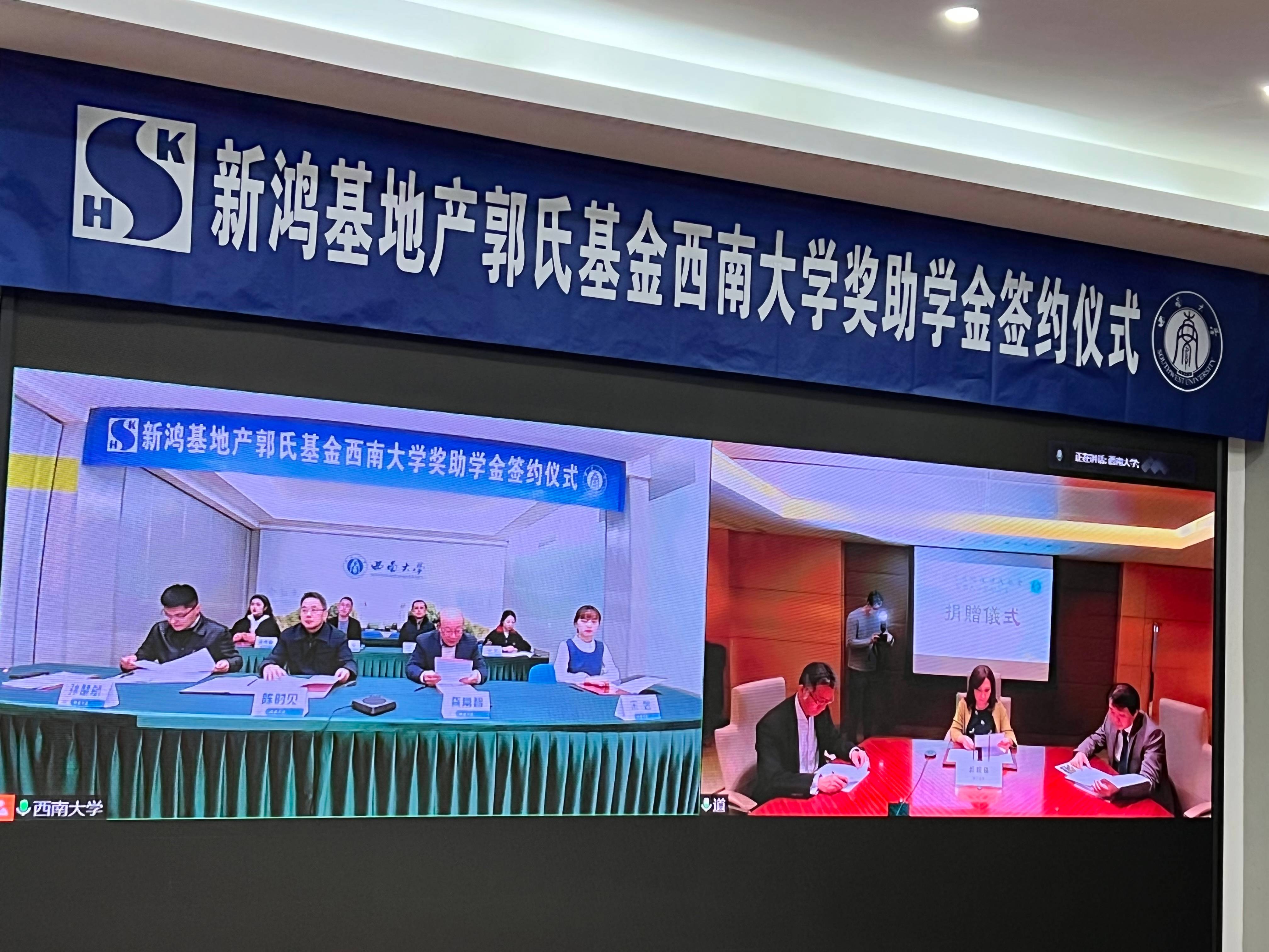 11月26日下午,新鸿基地产郭氏基金beat365在线唯一官网登录奖助学金签约仪式以线上视频会议方式在国际合作与交流处视频会议厅举行。新鸿基地产郭氏基金有限公司执行董事郭婉仪,总监李家华,传讯总监廖国伟,学校副校长陈时见出席会议,党委学生工作部、对外联络办公室、教育基金会负责人以及受助学生代表参加会议。