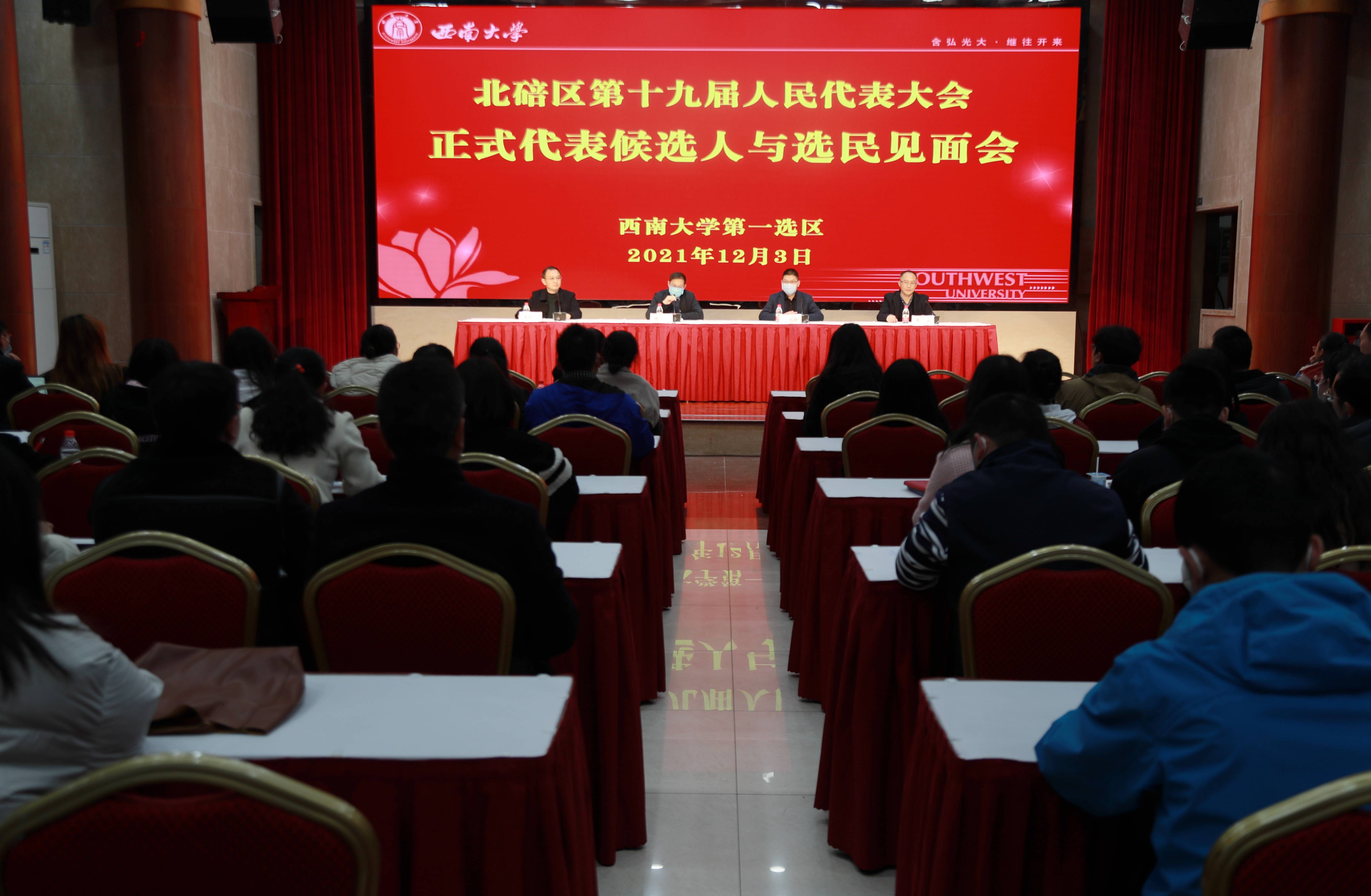 见面会中,选区负责人介绍正式候选人产生过程和候选人基本情况,候选人就个人情况作补充介绍并表态发言,与选民代表亲切互动。选民们针对候选人个人情况,以及关涉学校建设发展特别是关系到师生员工切身利益的问题、有关北碚区经济社会发展相关问题进行提问,借此考察候选人今后的履职意愿和履职能力。见面会充满民主、宽松、和谐的氛围。