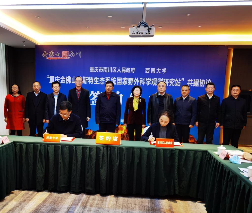 12月10日,校长张卫国、副校长赵国华带队与南川区签订合作协议,共建重庆金佛山喀斯特生态系统国家野外科学观测研究站,并商讨在科技创新、乡村振兴、基础教育、文化旅游、人才培养等领域广泛开展合作。南川区委书记丁中平、区委副书记、区长施崇刚等出席会议。